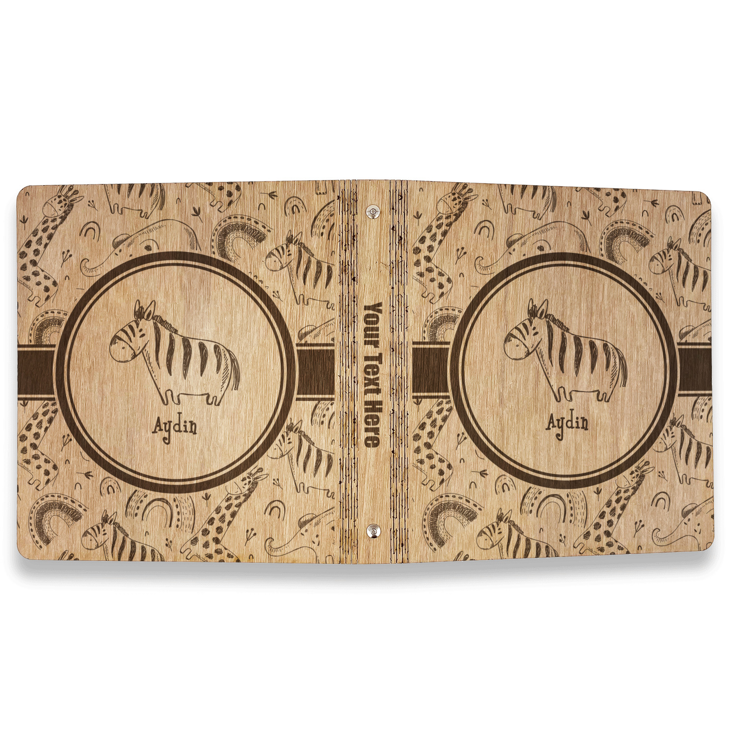 Made from premium hardwood, these are laser engraved then polished with wax to give a nice sheen and smooth feel to the product. The inside of the binders are finished with a faux leather material which is bonded to the inside of the wood to strengthen the wood and give the inside the same refined finish. The rustic brown and gold leather material adds a nice classic touch to the binders.
