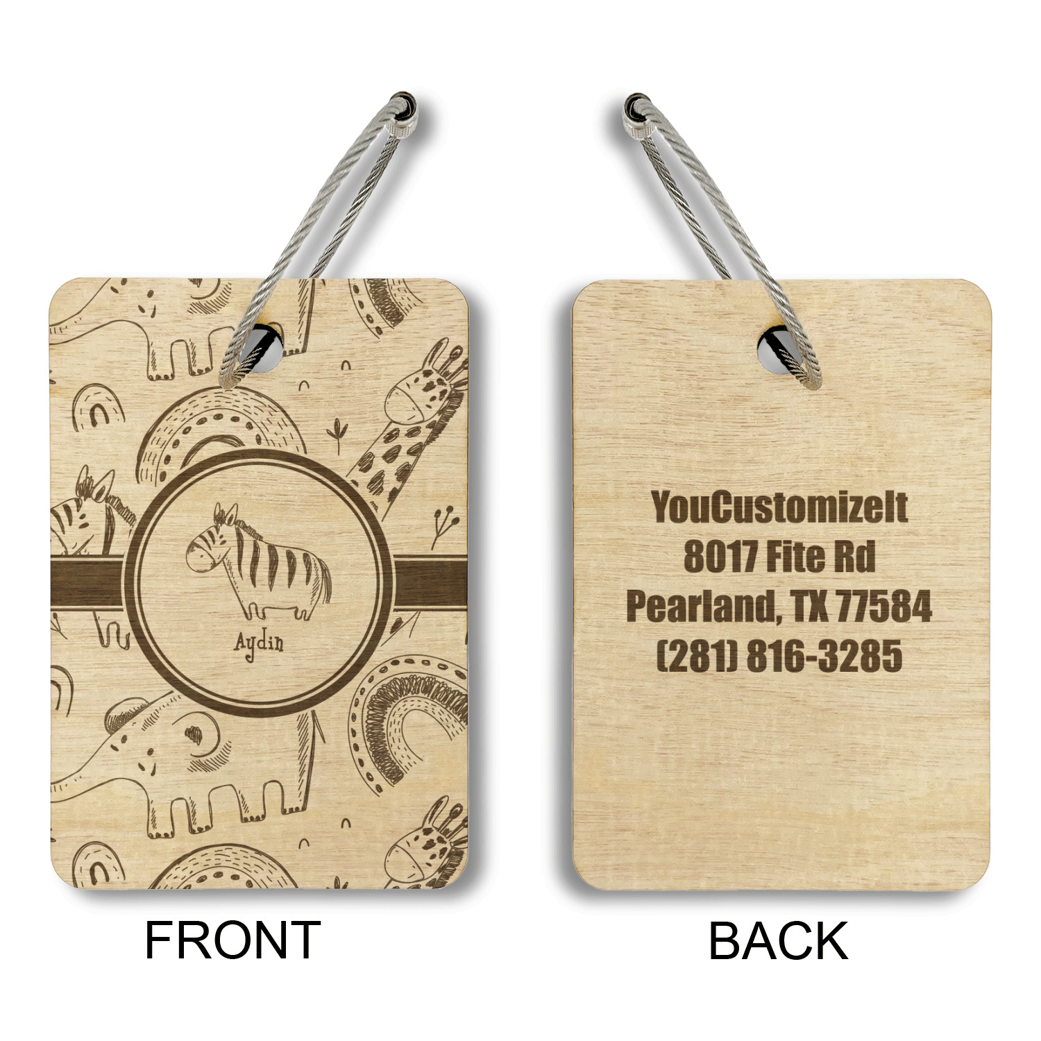 Made from a premium hardwood, these luggage tags are laser engraved and cut just for you. The front contains your design of choice and the back has your contact information to ensure your luggage gets back to you if ever lost.