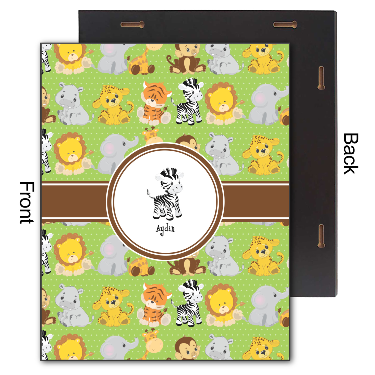 The design has classic ribbon along with a classic round label in a beautiful earth brown The label features a baby zebra in this design, however the choice of the baby animal is yours. You can select any of the baby animals to be featured on the label along with the child's name.