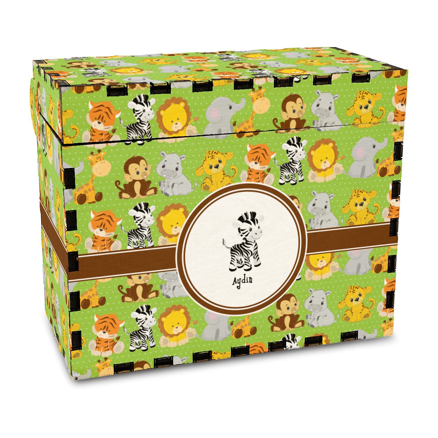 The design has classic ribbon along with a classic round label in a beautiful earth brown The label features a baby zebra in this design, however the choice of the baby animal is yours. You can select any of the baby animals to be featured on the label along with the child's name.
