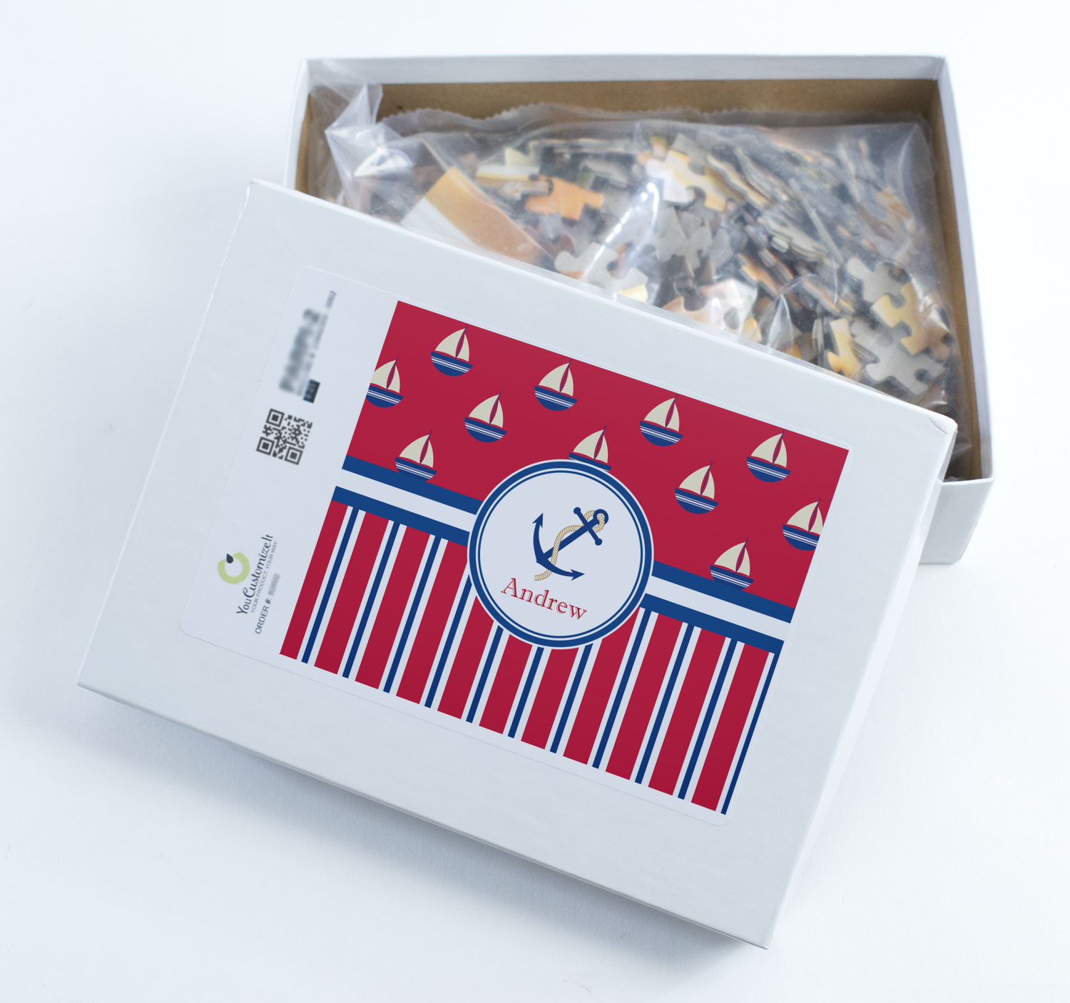 You can also upload your logo or art that you or your kids drew. To create more challenging jigsaw puzzles, you can create a pattern from with your logo or artwork. You can also add other elements such as text or personalization.