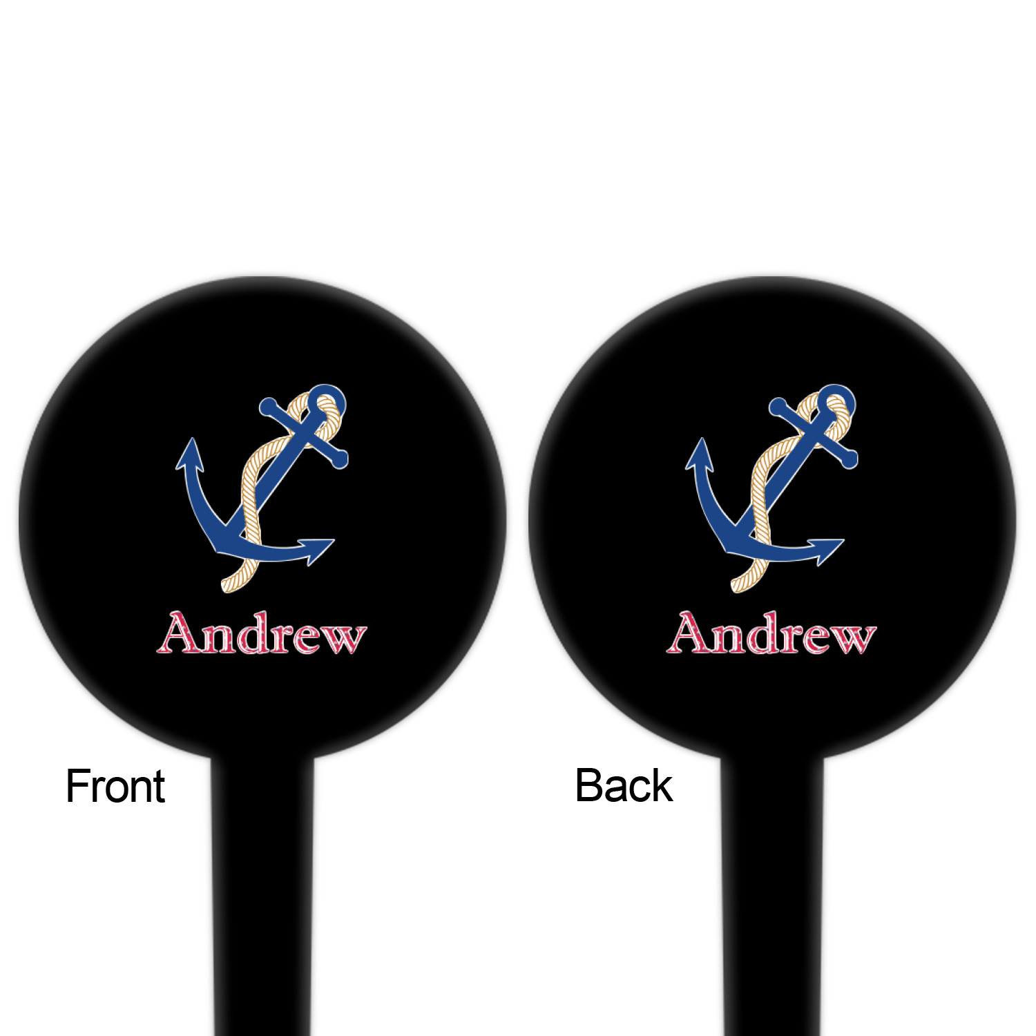 Coastal / Beach Style Designs for 4" Round Plastic Food Picks - Black - Double-Sided