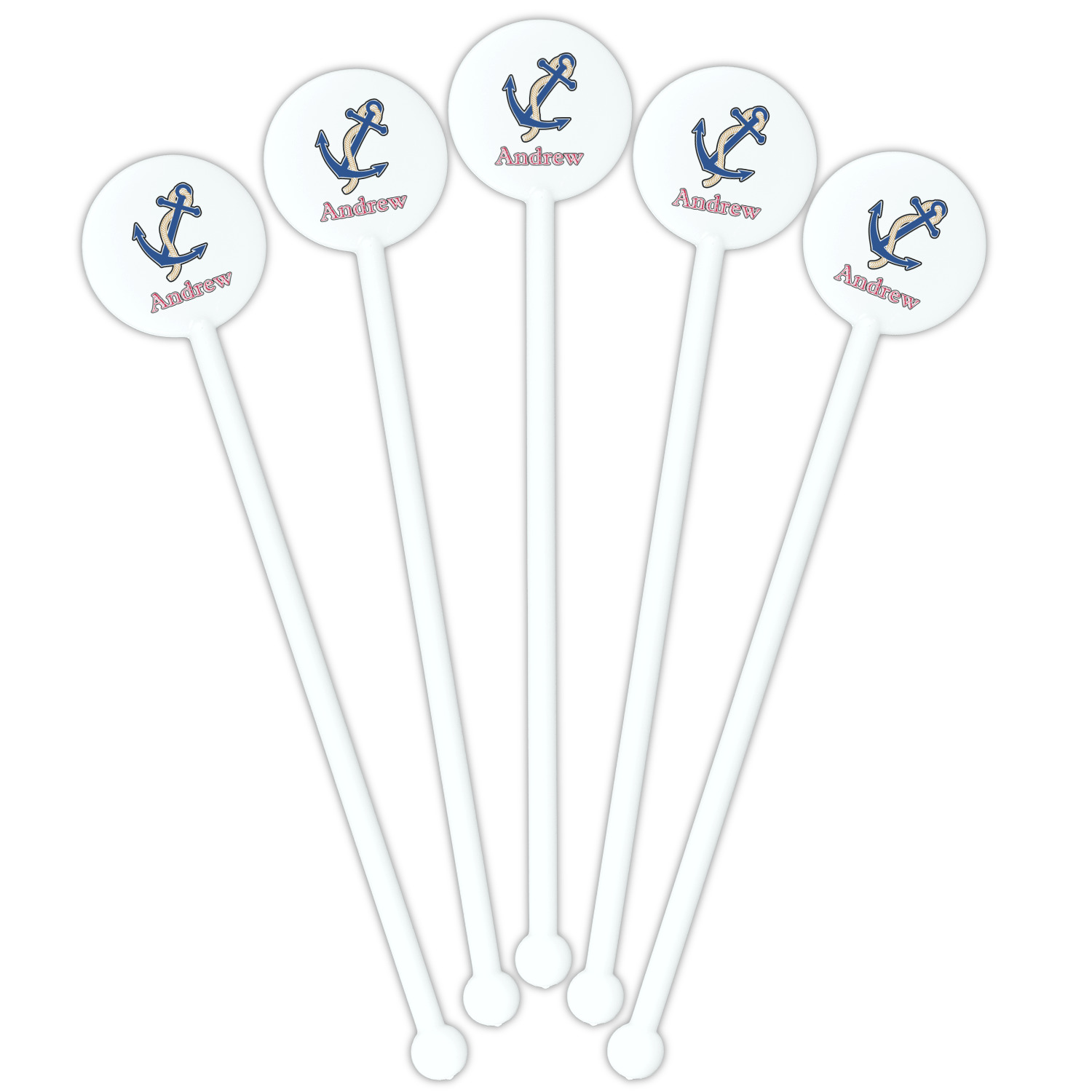 Coastal / Beach Style Designs for 5.5" Round Plastic Stir Sticks - White - Single-Sided