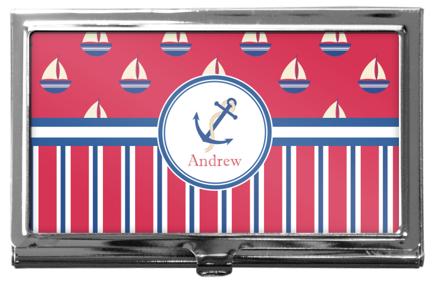 Our personalized business card holders are built from a robust, stainless steel and shaped into a sleek rectangle. At 3.75" x 2.5", and 0.25" thick, this nifty accessory holds up to 12 to 15 business cards, depending on the thickness of the cards themselves. Regardless, the skinny style makes it the perfect fit for your purse or pocket. The lid of your custom business card holder features a protruding tab to open and close your holder with a snap. To protect the mint condition of your cards, the interior of this metal business card holder is lined with a soft, felt fabric. We print your personalized design across the face of the lid.