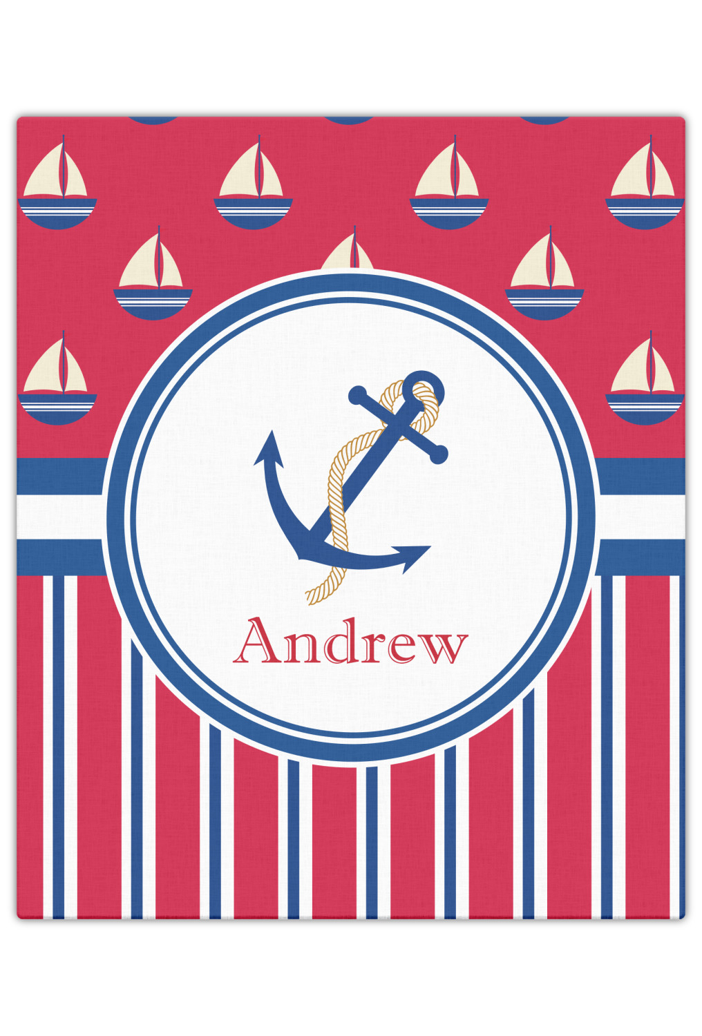 A porthole circle showcases an anchor and rope in the coordinating colors. Add your child's name for that personalized designer's touch.