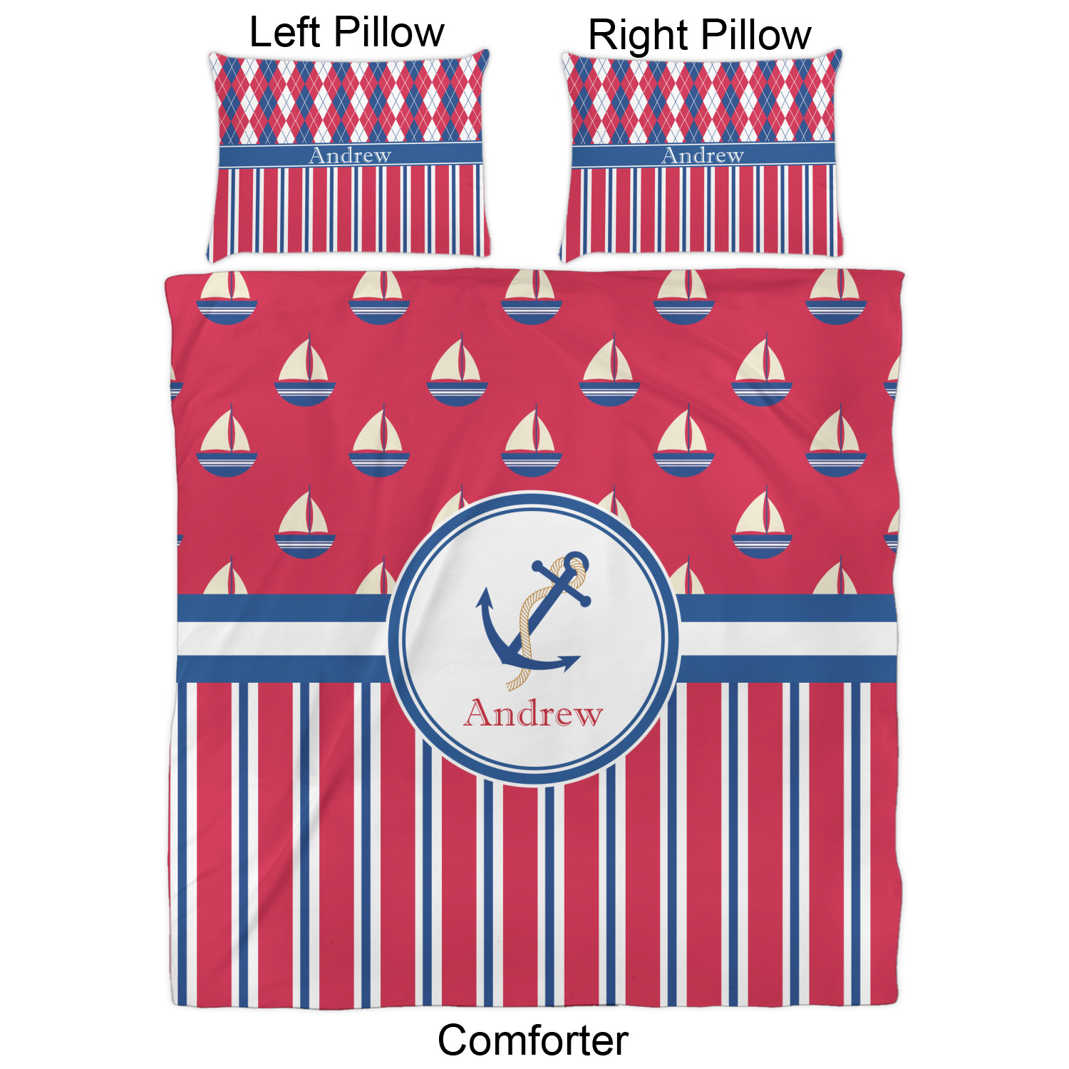 We have hundreds of different design templates for you to choose from Each design can be customized to your exact specifications. Not only can you customize the comforter, but you can also customize each pillow sham e.g. for a queen comforter set you have have Mr & Mrs pillow shams with the last name on comforter.