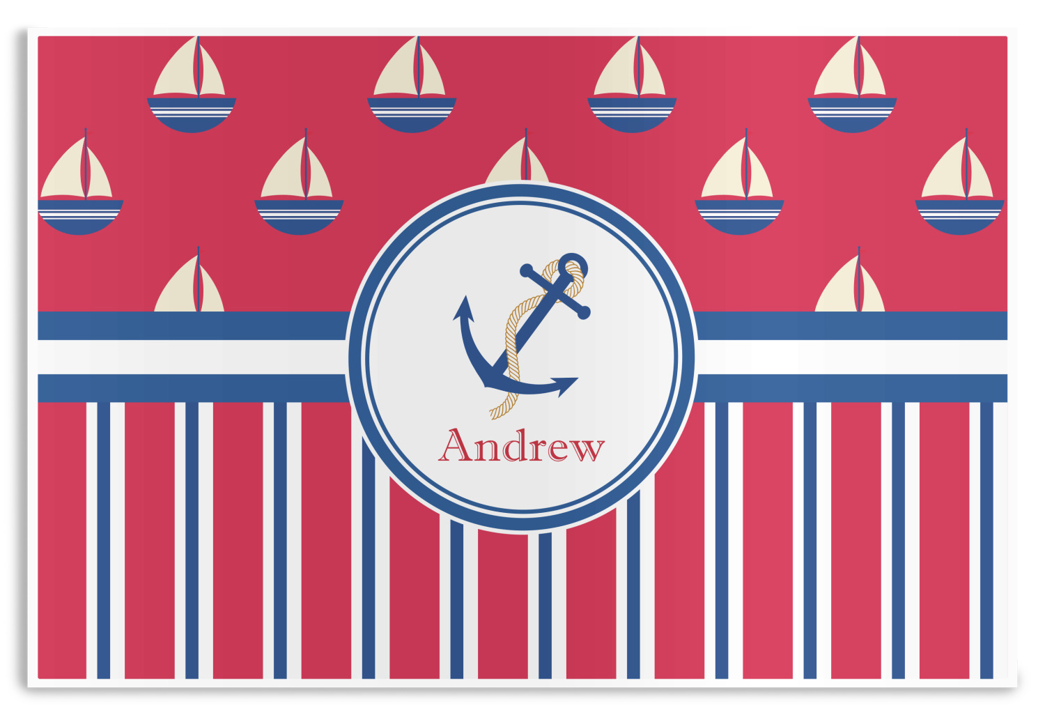 A porthole circle showcases an anchor and rope in the coordinating colors. Add your child's name for that personalized designer's touch.
