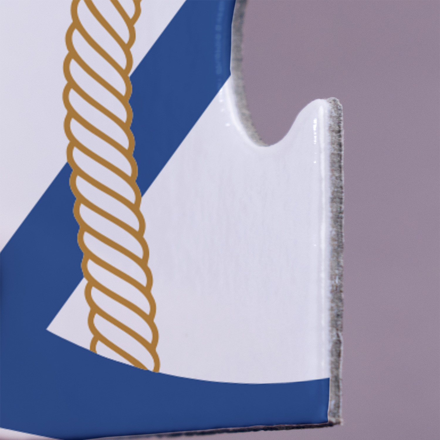 A porthole circle showcases an anchor and rope in the coordinating colors. Add your child's name for that personalized designer's touch.