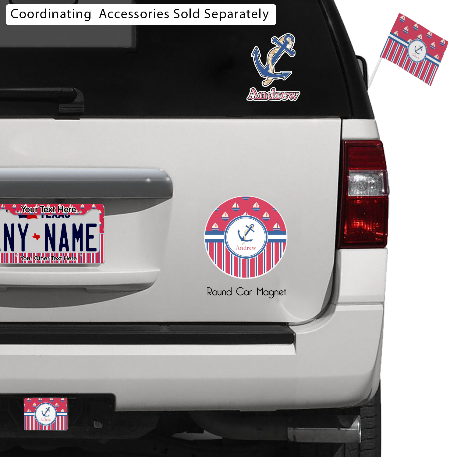 A porthole circle showcases an anchor and rope in the coordinating colors. Add your child's name for that personalized designer's touch.
