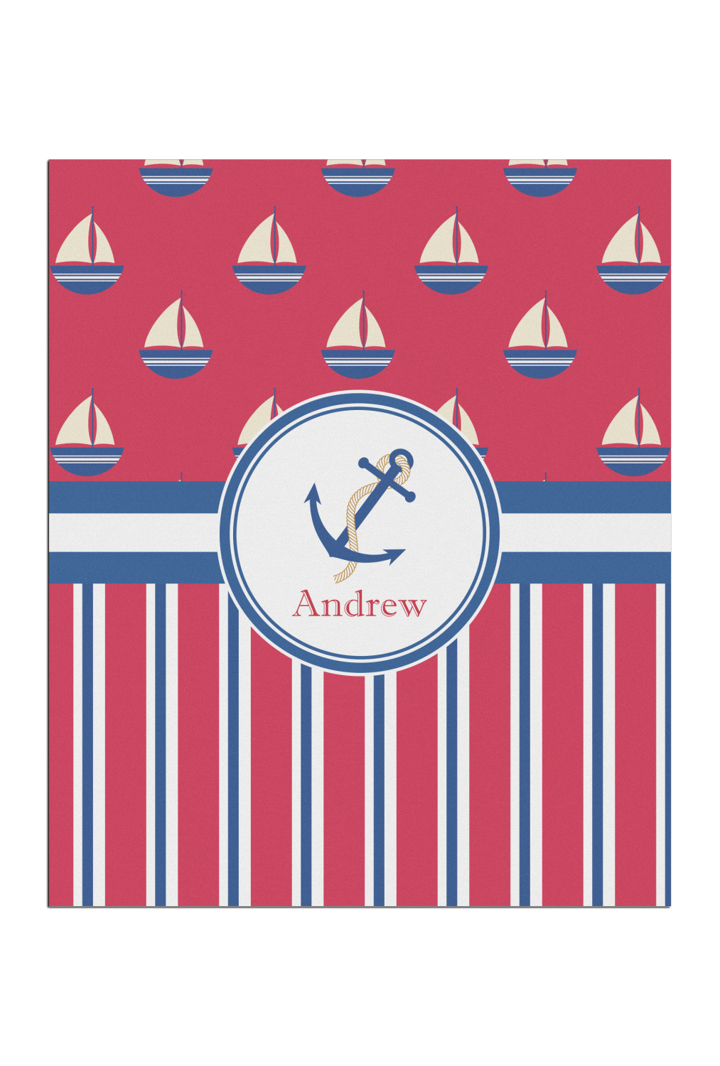 A porthole circle showcases an anchor and rope in the coordinating colors. Add your child's name for that personalized designer's touch.