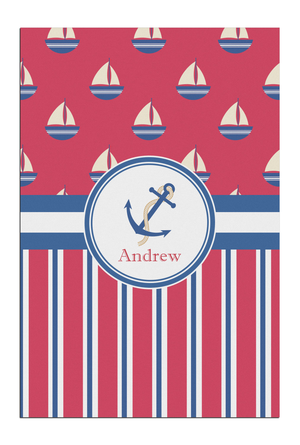 A porthole circle showcases an anchor and rope in the coordinating colors. Add your child's name for that personalized designer's touch.