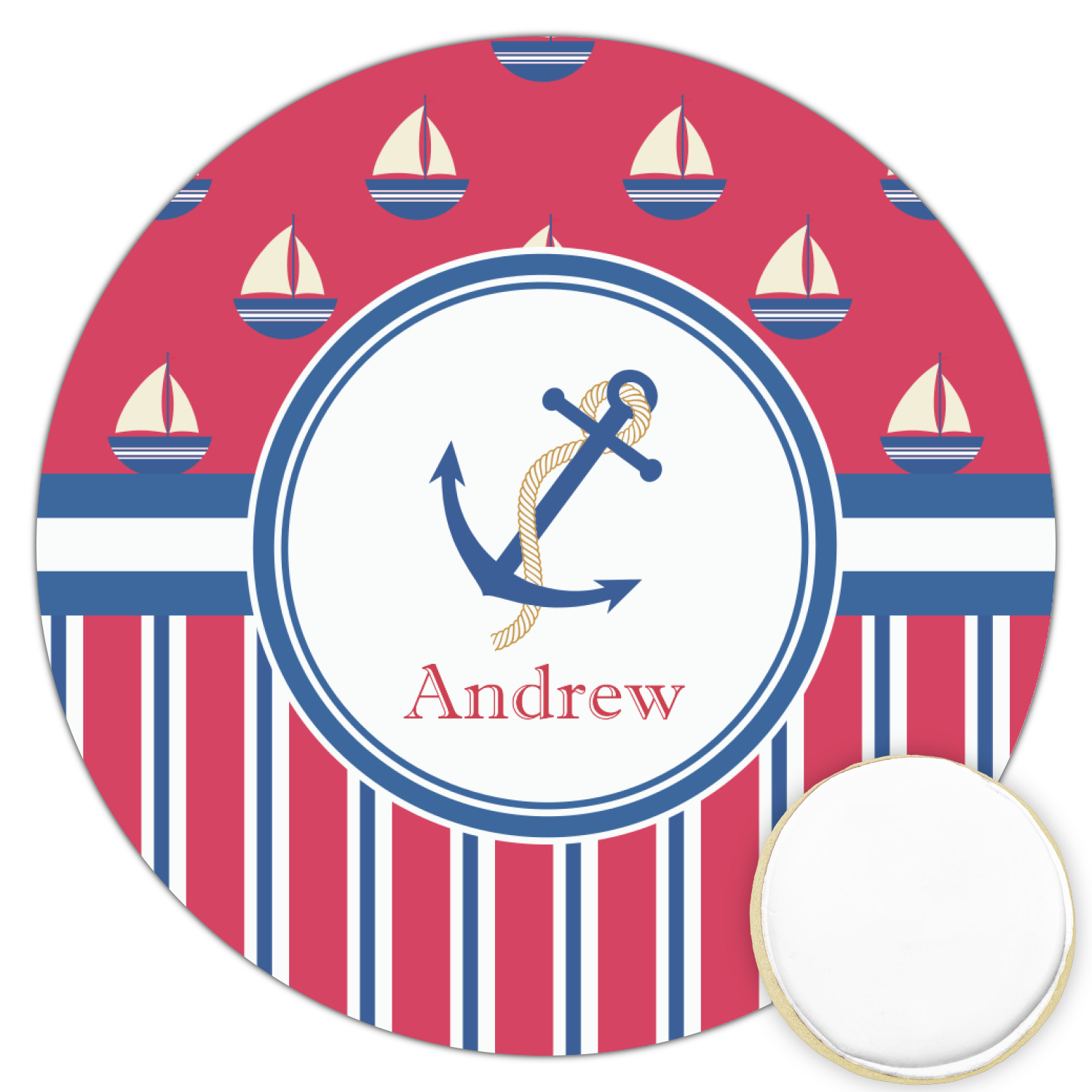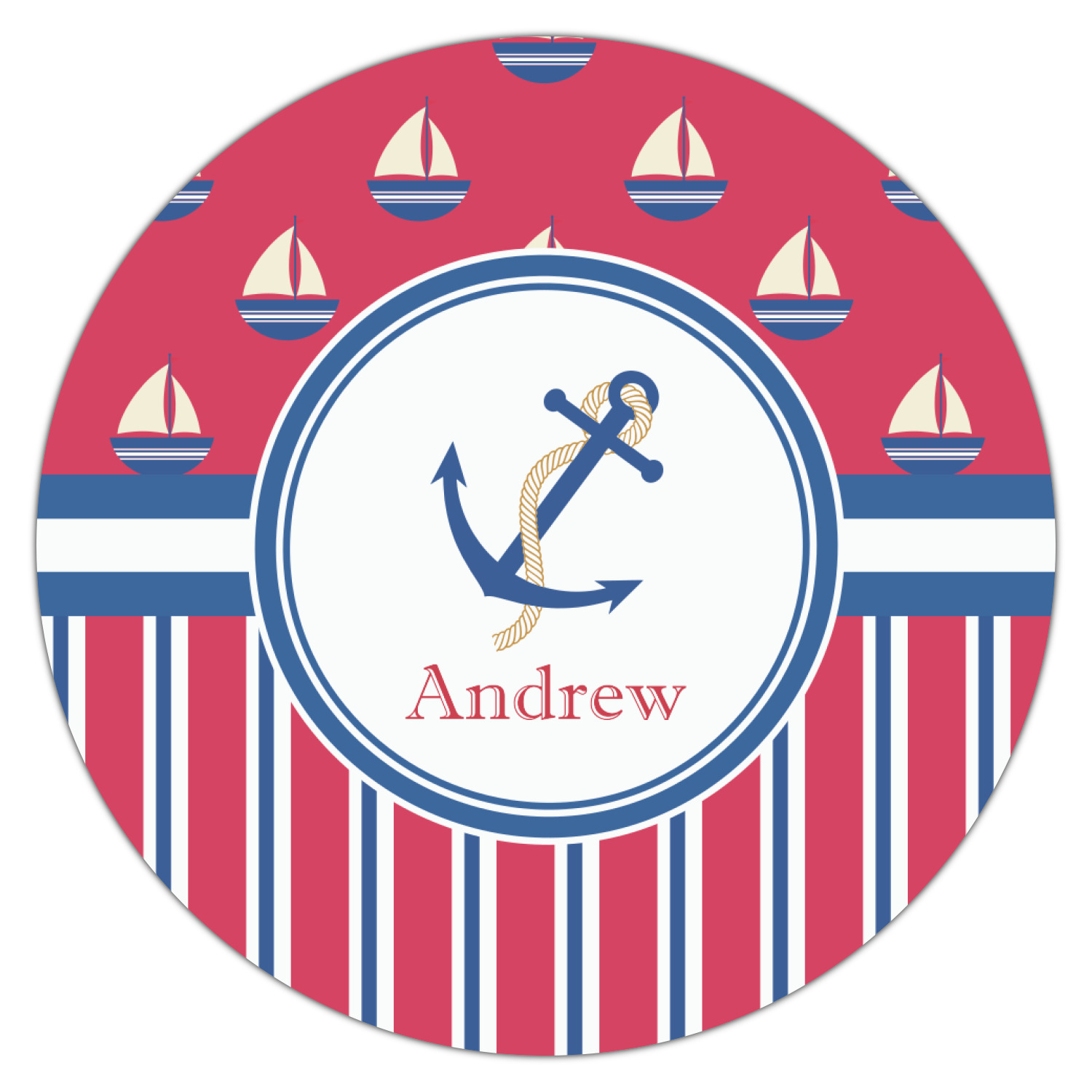 A porthole circle showcases an anchor and rope in the coordinating colors. Add your child's name for that personalized designer's touch.