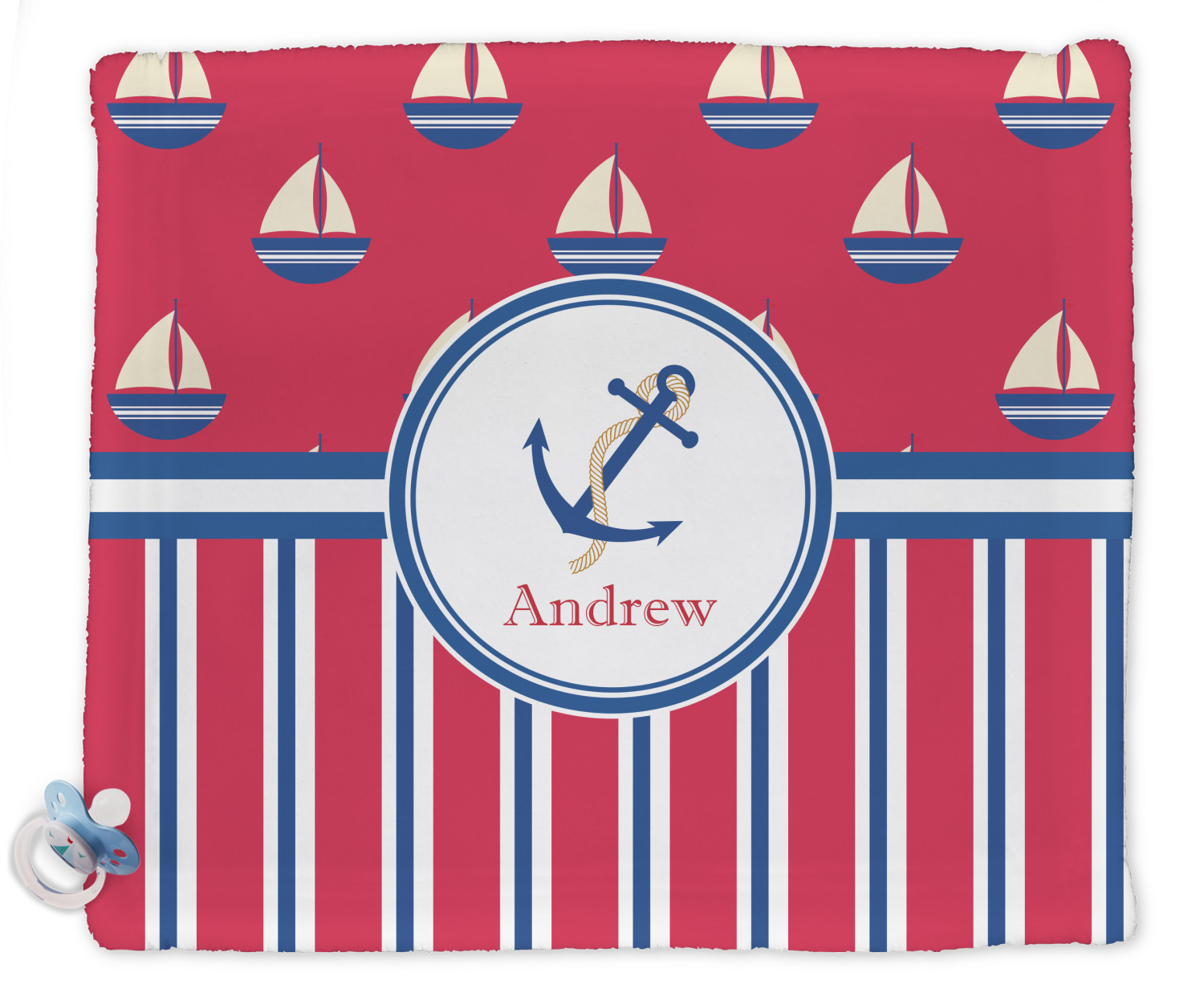 A porthole circle showcases an anchor and rope in the coordinating colors. Add your child's name for that personalized designer's touch.