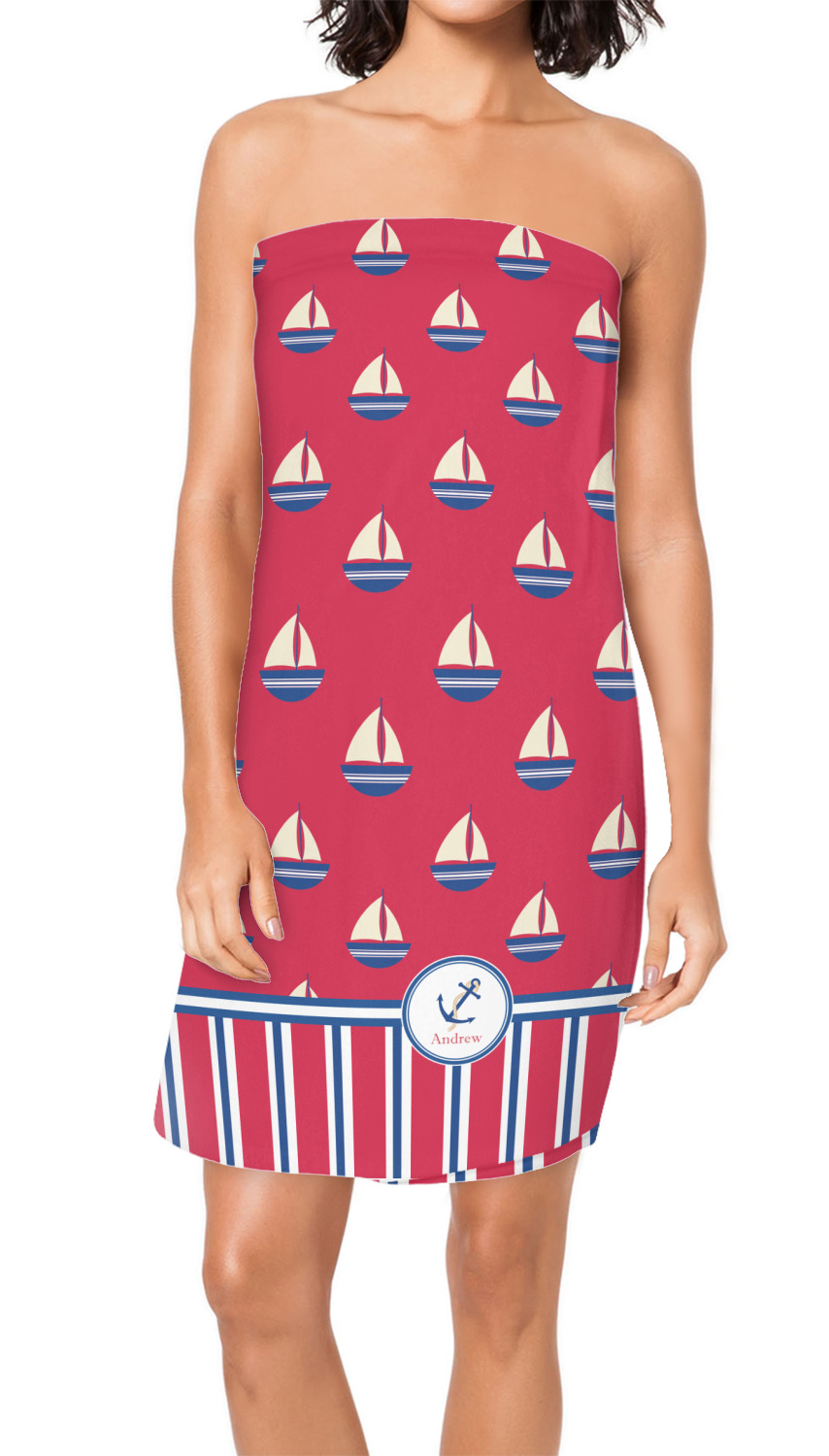 Made from a plush, fleece fabric, these luxurious towel wraps are comfortable and absorbent. They are printed, cut, and sewn for you, right here in the USA, after you place your order. These personalized bath wraps measure at approximately 59 by 32 inches, and display your customization across the outside.
