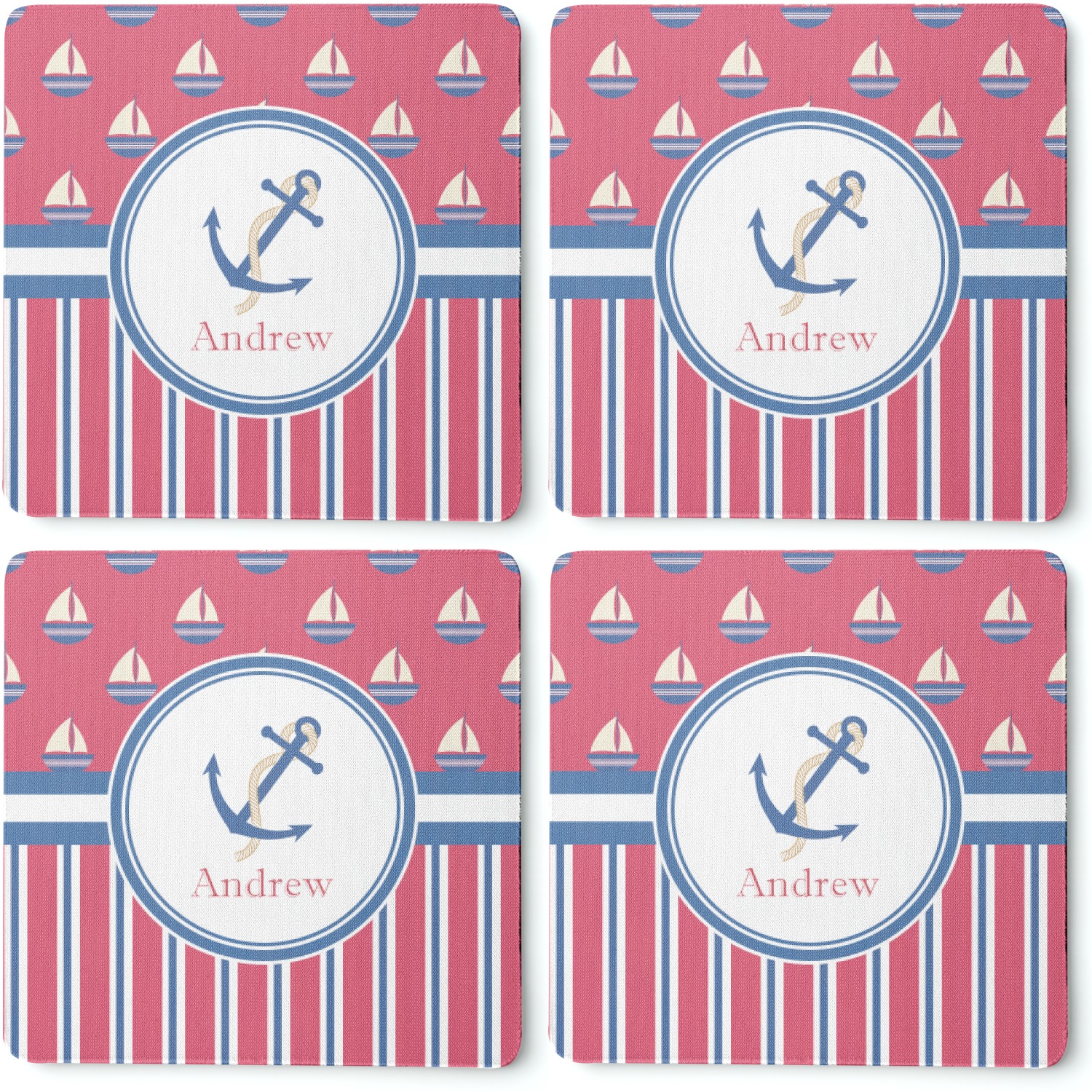 Sailboat Designs for Square Rubber Backed Coasters - Set of 4