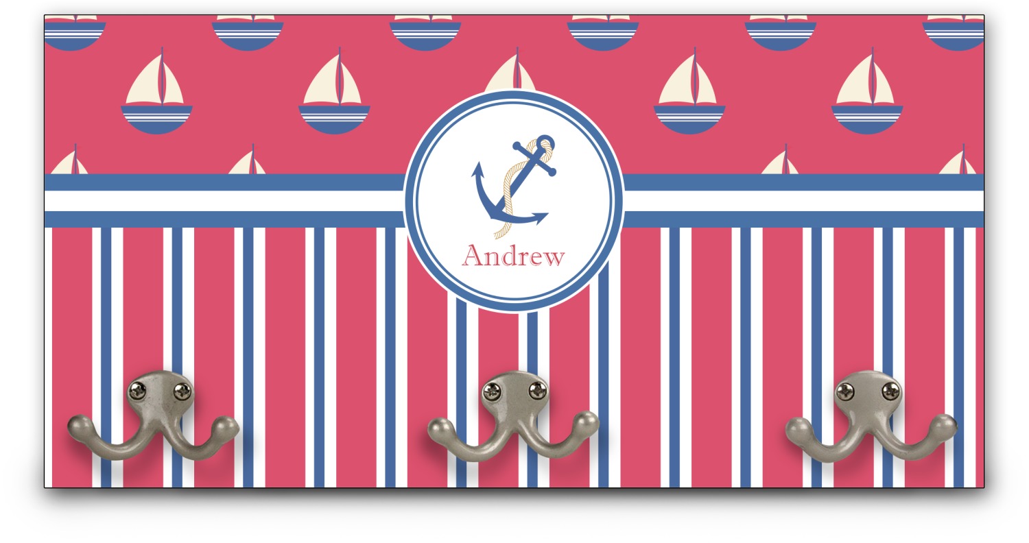 This coat rack is the perfect way to add some personality to your wall or entryway. The board is made of a strong maple that is approximately 16" x 8". The three 2-prong hooks are a sturdy metal that have three screws attaching them to the board. Your design is printed right onto the front of the board while the back and sides are a simple black.