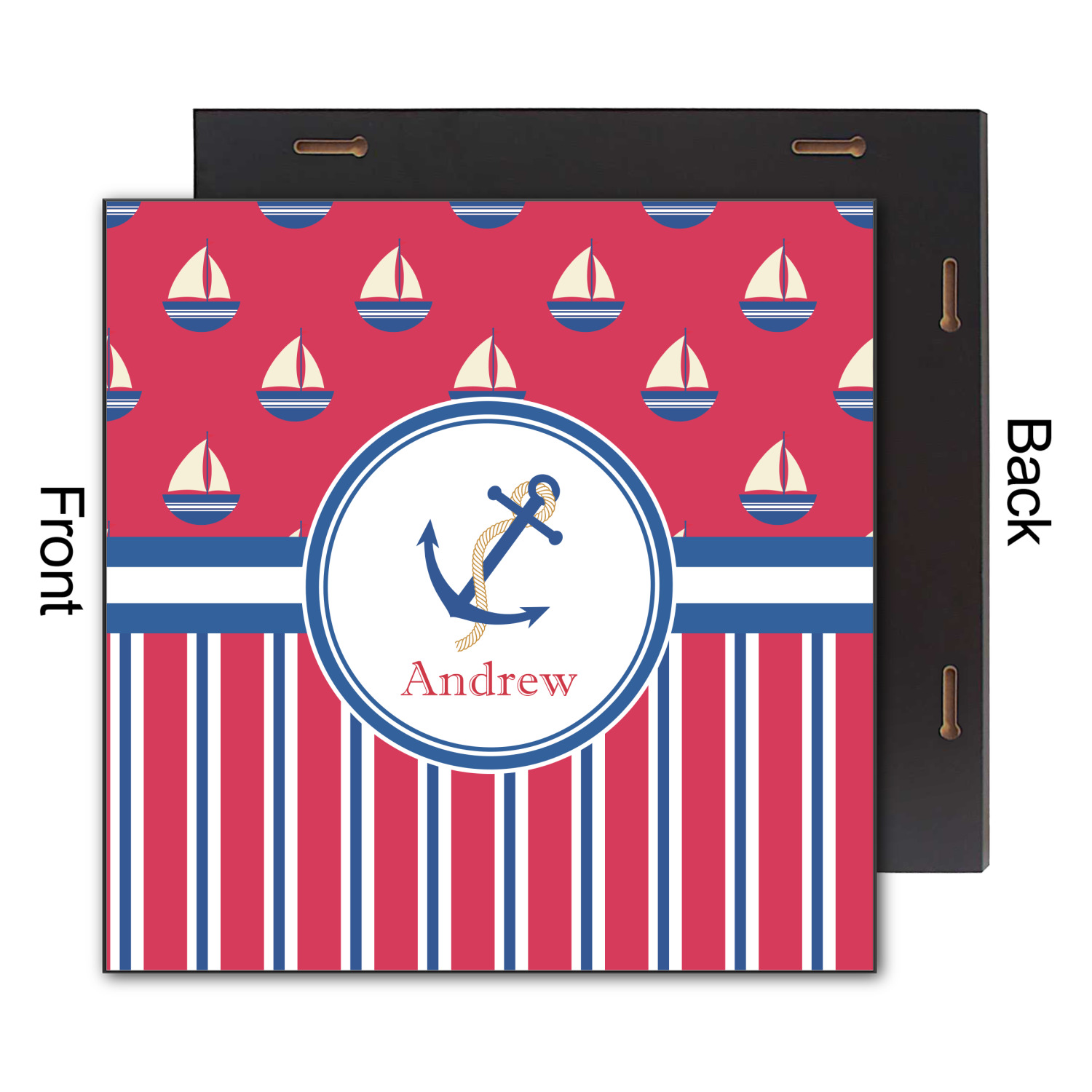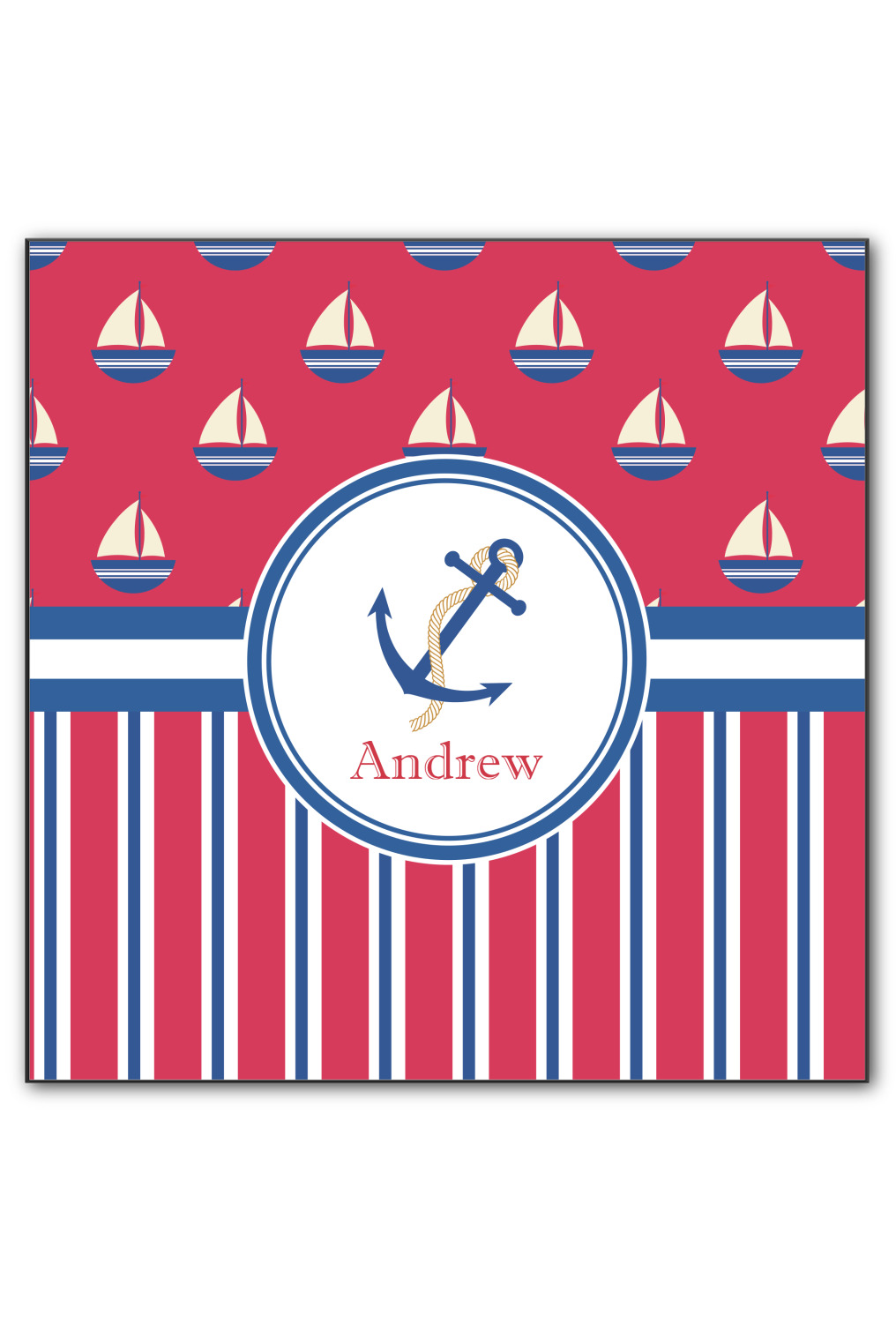 A porthole circle showcases an anchor and rope in the coordinating colors. Add your child's name for that personalized designer's touch.