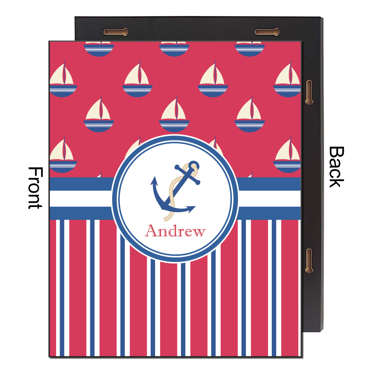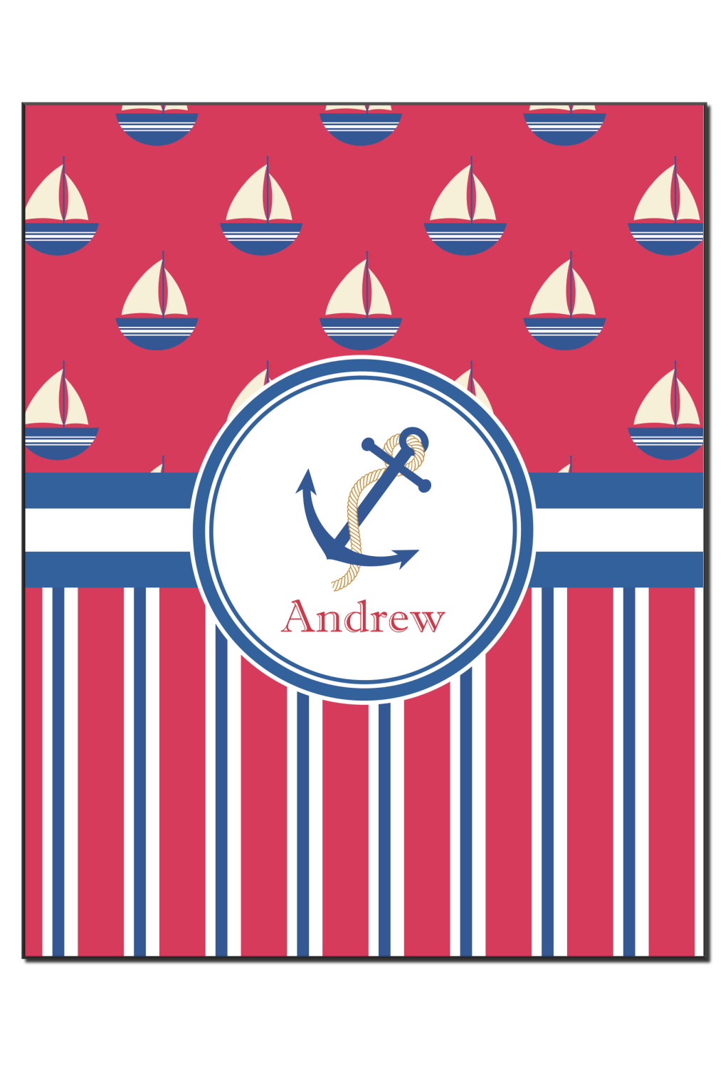A porthole circle showcases an anchor and rope in the coordinating colors. Add your child's name for that personalized designer's touch.