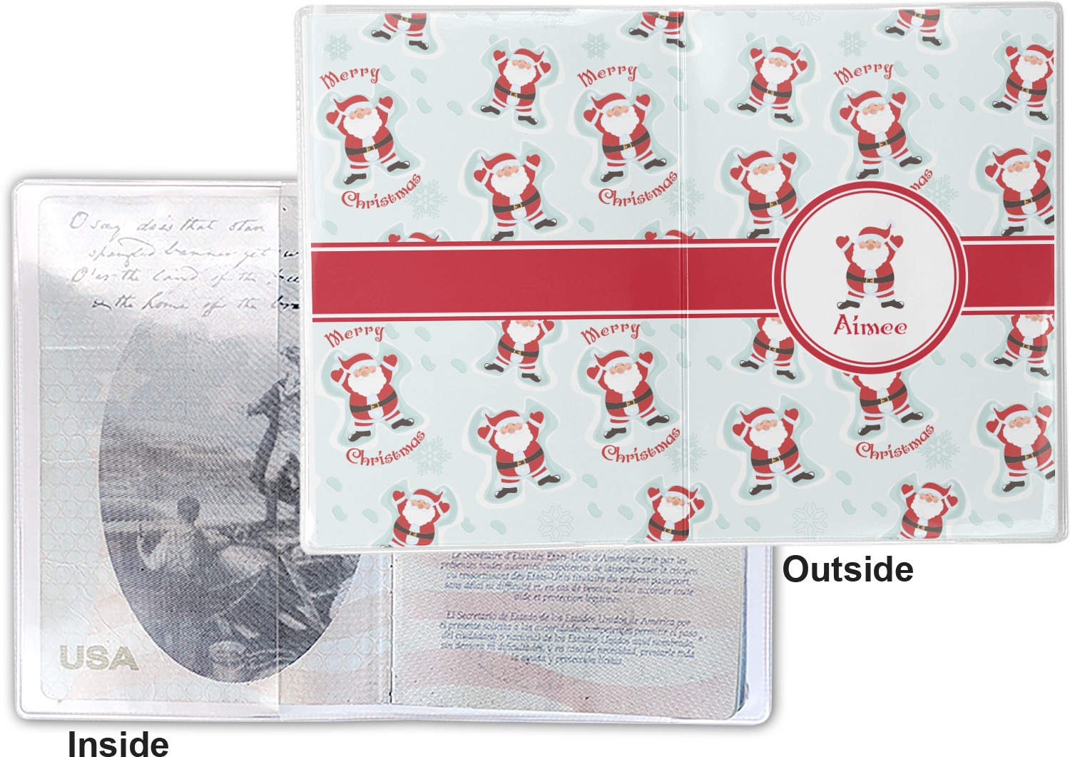 This cover is made of a sturdy clear vinyl with a personalized vinyl insert inside. There is a large and a small pocket on either side to hold the covers of your passport easily and firmly. The passport holder is approximately 7.5" x 5.25", the perfect size to snugly fit your passport. This slim cover is the perfect way to protect your passport without being one more bulky item you have to carry.