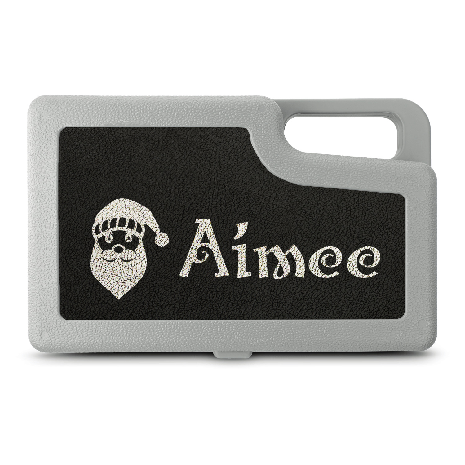 In a hard shell plastic case which measures 12in long by 7.5in wide and 3in tall, this tool kit is the perfect size to easily fit in a trunk or small compartment without taking up too much room. With the black faux leather on the outside engraved with your choice of personalization you can make this tool kit to be uniquely yours to ensure it stays with you for a lifetime!