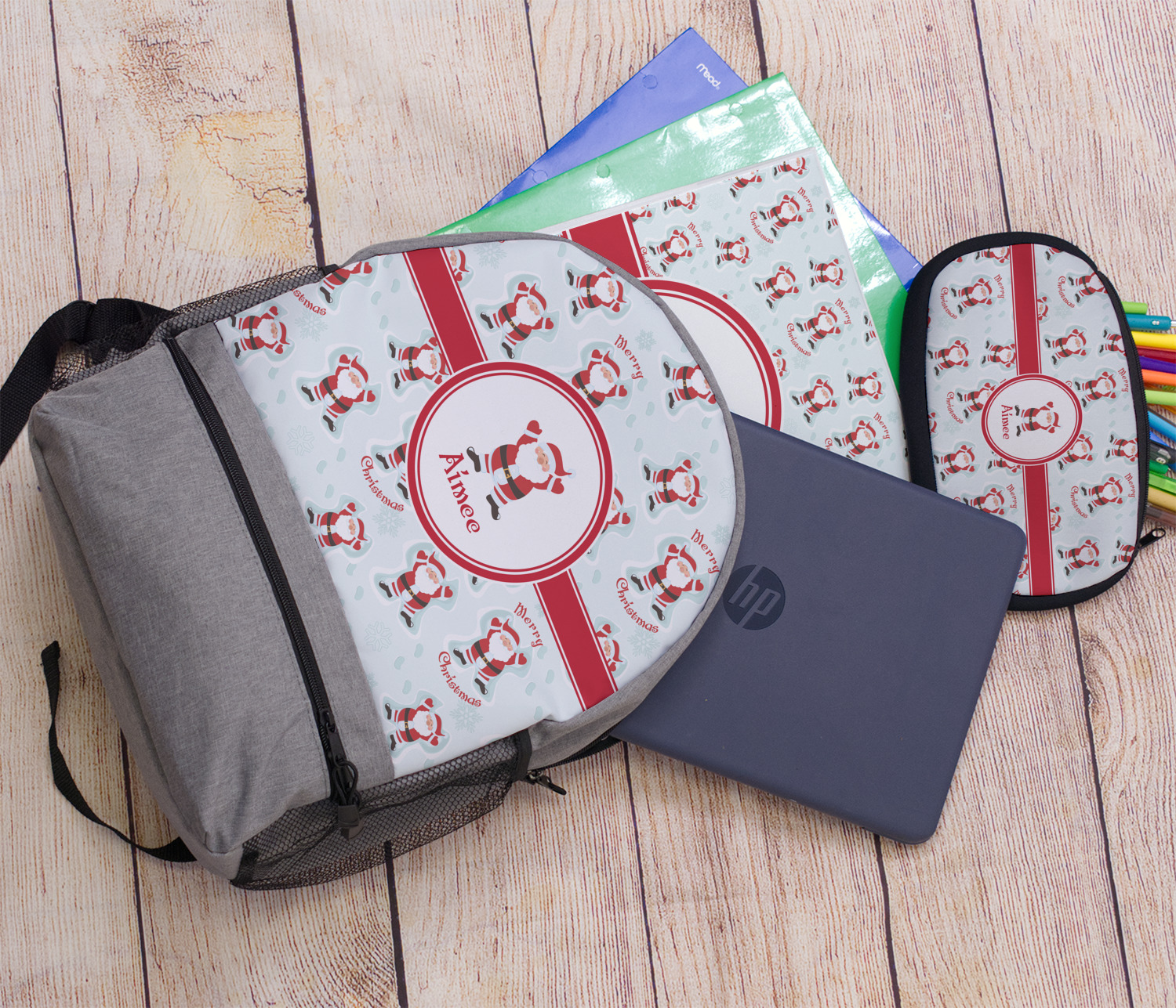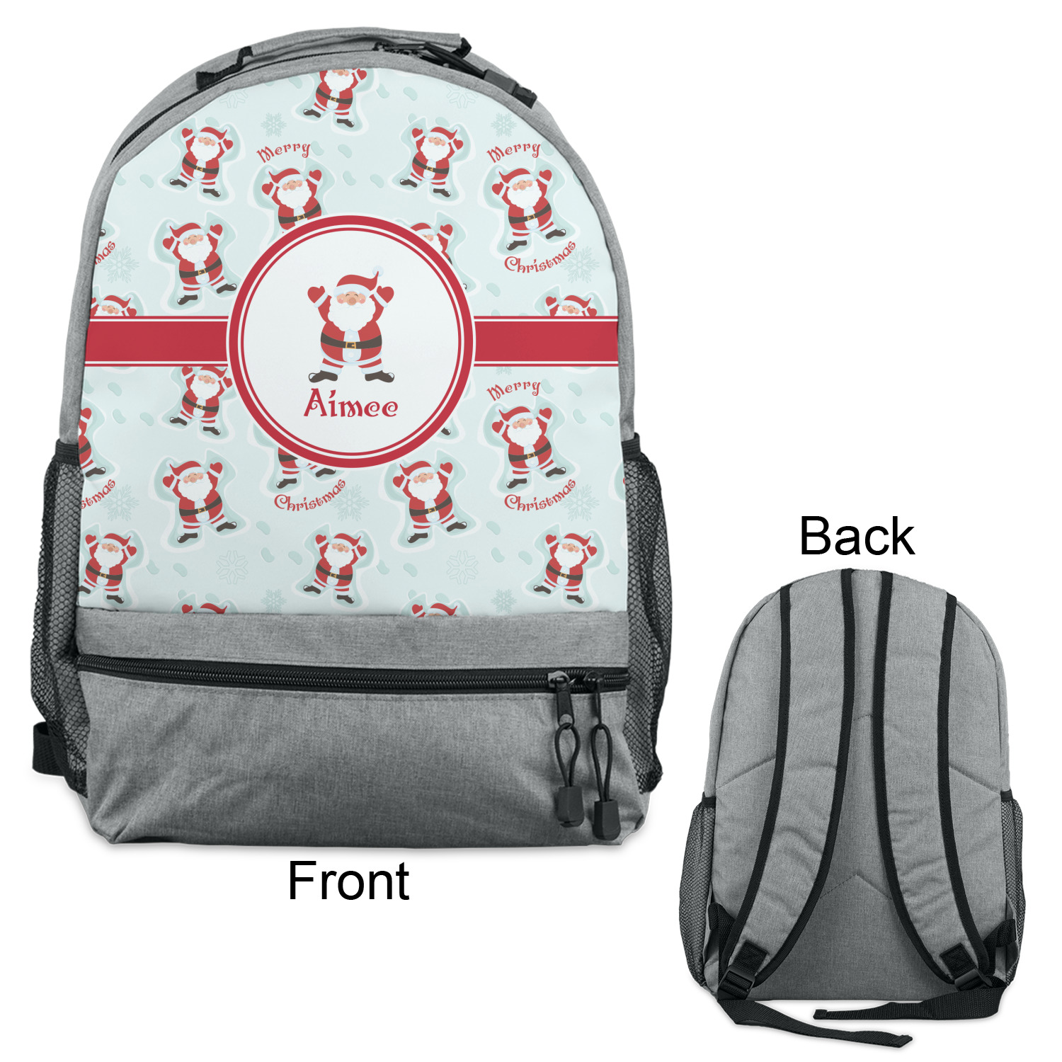 Believe in Santa Claus? Whether you do or not, this design is absolutely adorable with the background that has a cheerful Santa Claus all decked in his red and white, laying in the snow making snow angels. The ribbon and label are red, and the label also has the Santa Graphic along with your name or text for personalization.