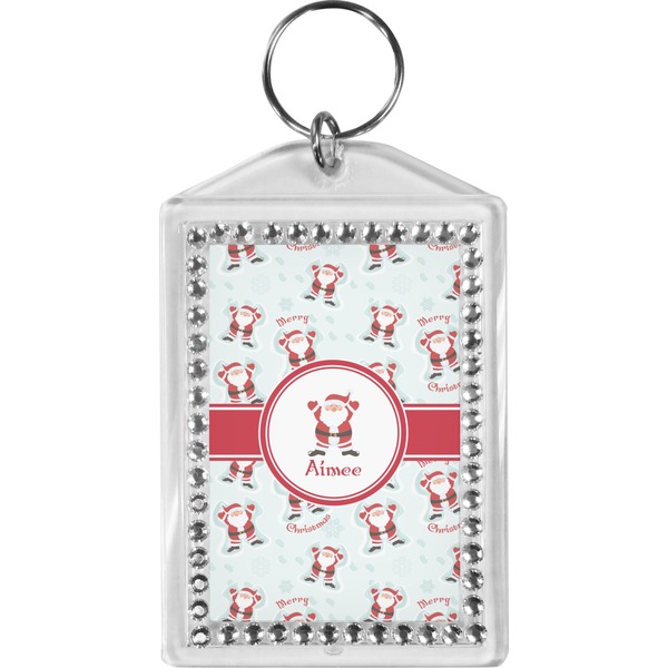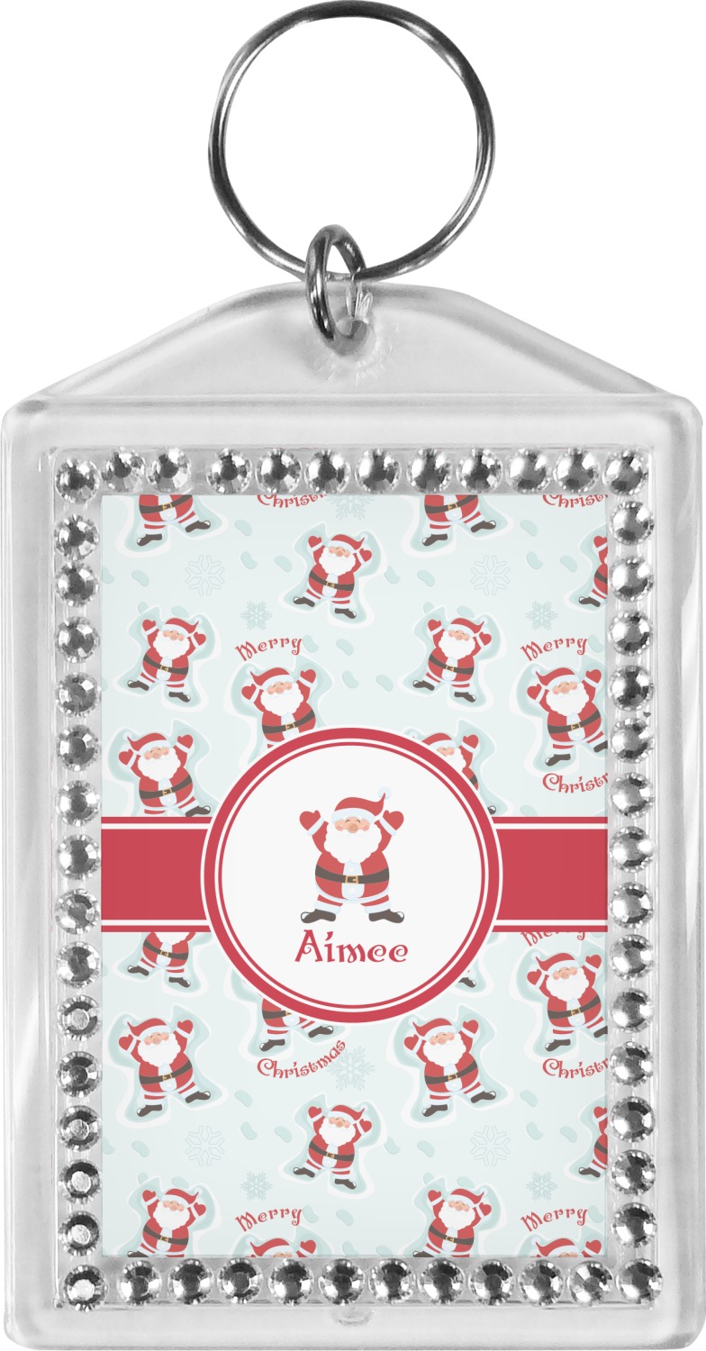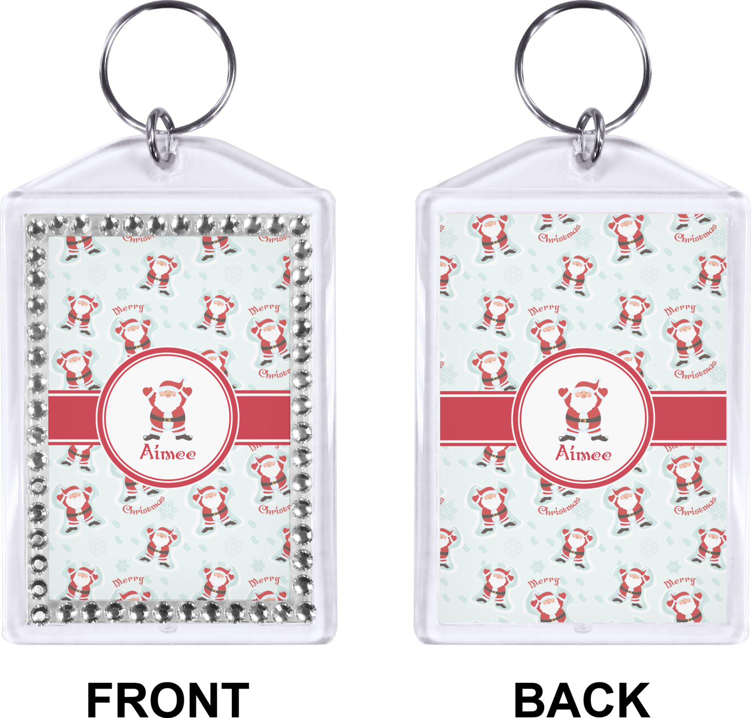 Our personalized keychains have a bold, rectangular shape, outlined by a series of shimmering rhinestones. A metal, split keyring is included with your purchase, and an additional metal hoop allows for attachment of the keychain to the split ring. This unique keychain measures at about 3.75 by 2.5 inches. We print your customized design(s) across both the back and front of this keychain.