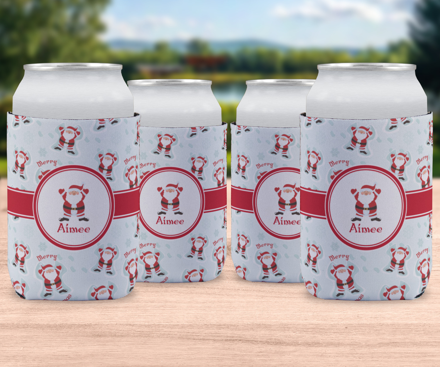 Believe in Santa Claus? Whether you do or not, this design is absolutely adorable with the background that has a cheerful Santa Claus all decked in his red and white, laying in the snow making snow angels. The ribbon and label are red, and the label also has the Santa Graphic along with your name or text for personalization.
