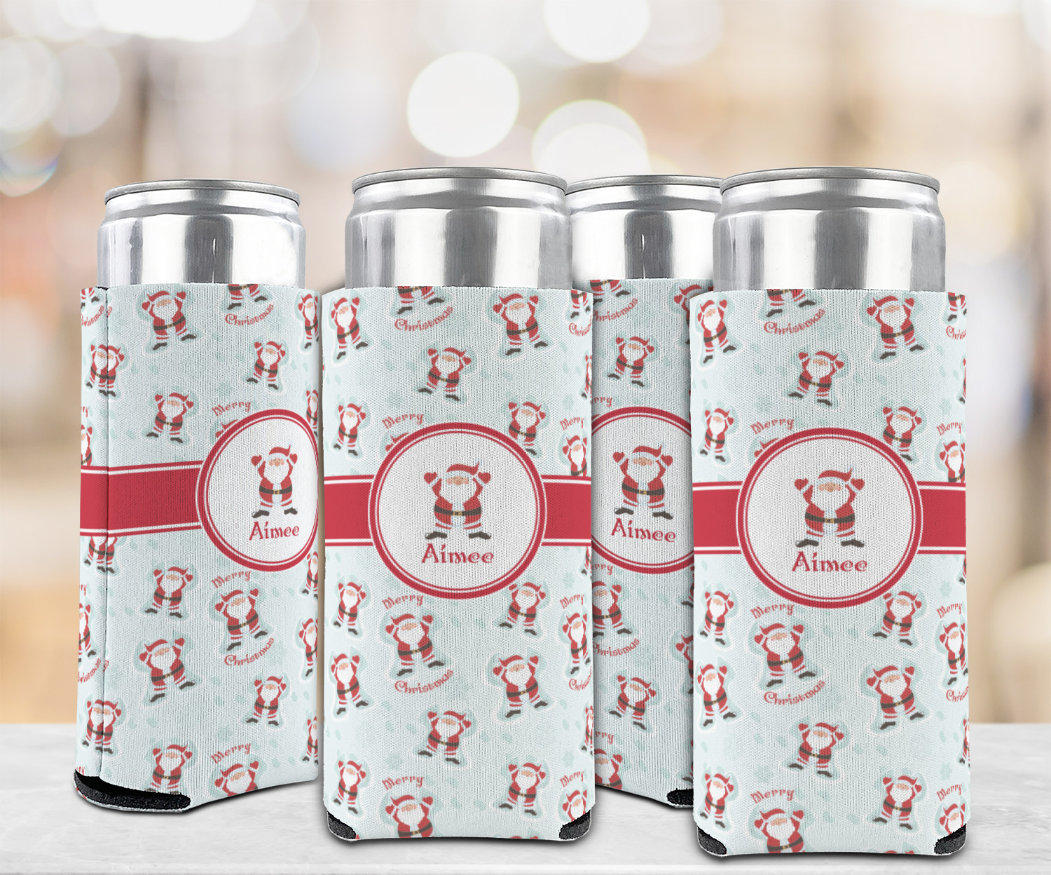 Believe in Santa Claus? Whether you do or not, this design is absolutely adorable with the background that has a cheerful Santa Claus all decked in his red and white, laying in the snow making snow angels. The ribbon and label are red, and the label also has the Santa Graphic along with your name or text for personalization.