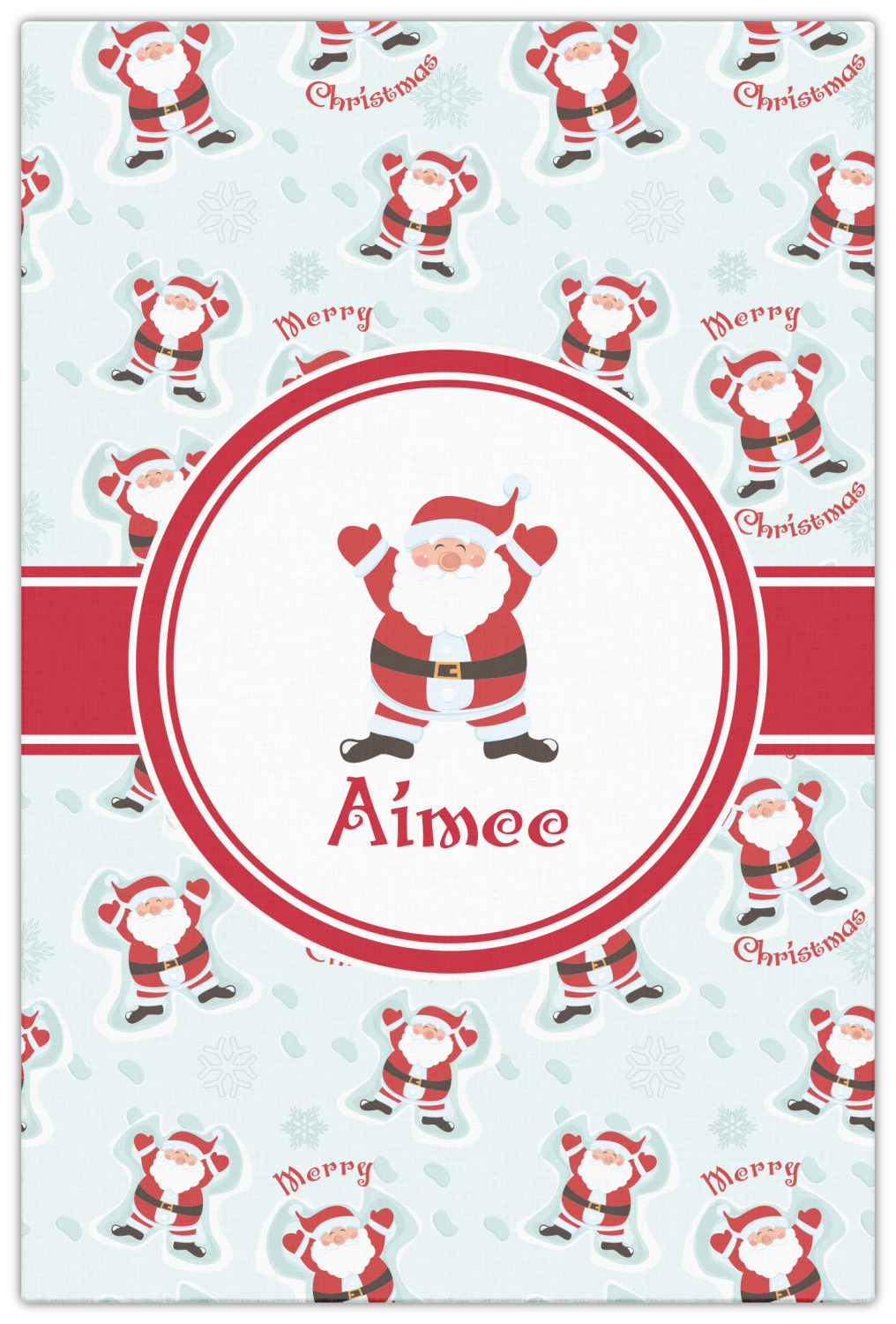 Believe in Santa Claus? Whether you do or not, this design is absolutely adorable with the background that has a cheerful Santa Claus all decked in his red and white, laying in the snow making snow angels. The ribbon and label are red, and the label also has the Santa Graphic along with your name or text for personalization.