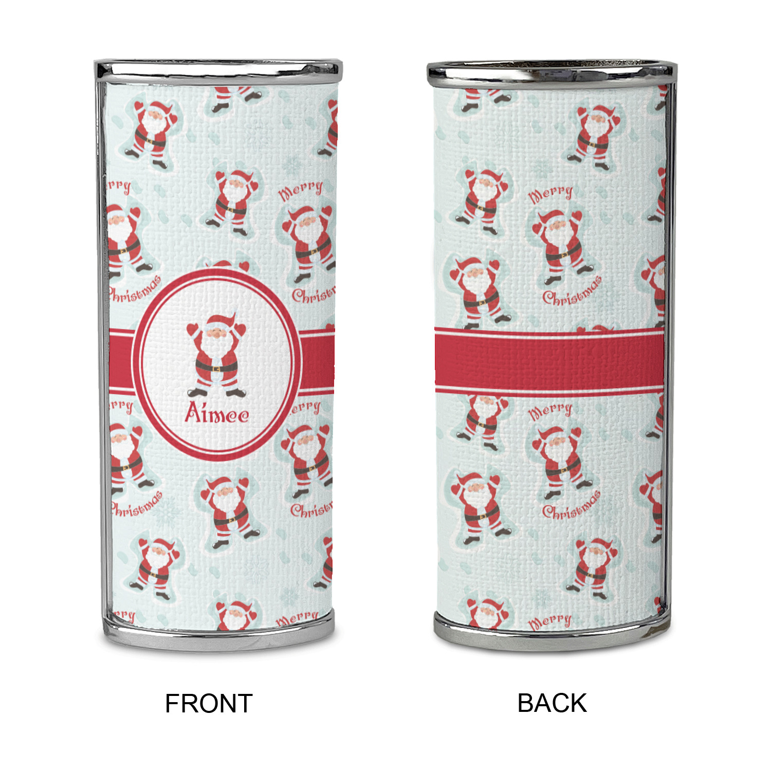 Believe in Santa Claus? Whether you do or not, this design is absolutely adorable with the background that has a cheerful Santa Claus all decked in his red and white, laying in the snow making snow angels. The ribbon and label are red, and the label also has the Santa Graphic along with your name or text for personalization.