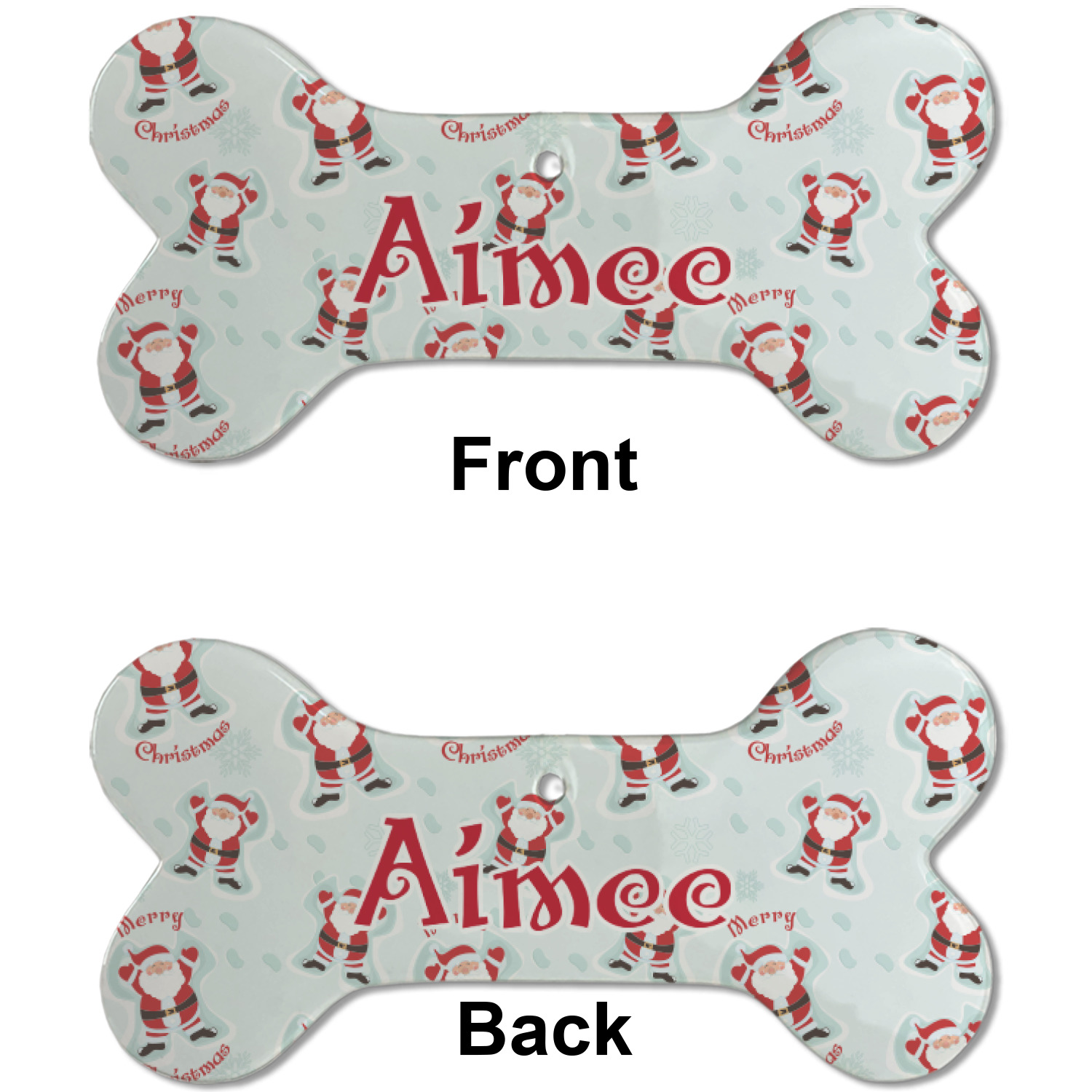 Our dog Christmas ornaments are a ceramic material with a bone-shaped structure hung horizontally. We offer two printing styles to personalize your furry friend's ornament! Choose a one-sided printing, perfect for wall decor, memorial accessory, or doghouse nameplate! Create a double-sided ornament perfect for adorning the Christmas tree. Each dog bone ornament is approximately 4.75" x 2.25" and is printed here in the USA.