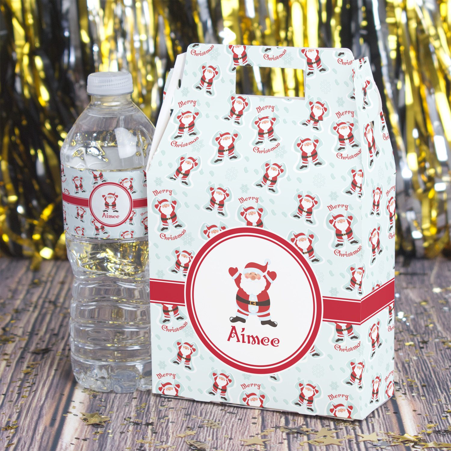 Believe in Santa Claus? Whether you do or not, this design is absolutely adorable with the background that has a cheerful Santa Claus all decked in his red and white, laying in the snow making snow angels. The ribbon and label are red, and the label also has the Santa Graphic along with your name or text for personalization.