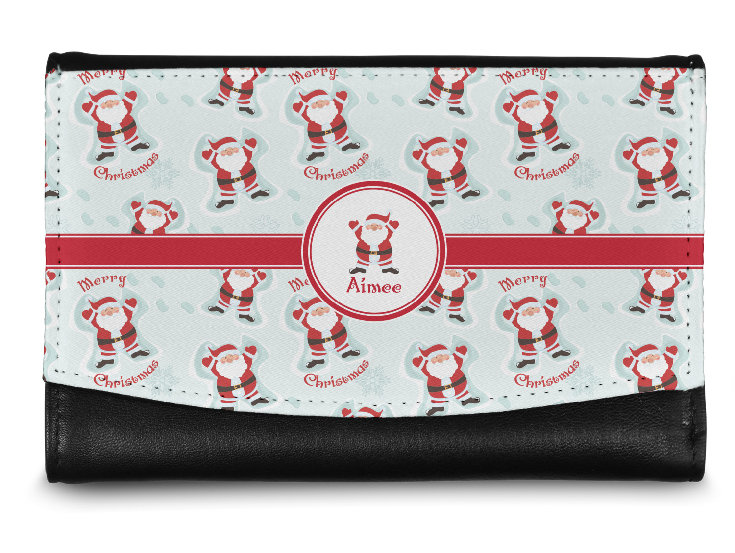 The compact size of this wallet - 5.5in wide, 3.5in tall and 0.75in thick when folded - makes it perfect to hold in hand and small enough to fit in a clutch or a normal size purse. The outside flap is customized with your choice of artwork and closes with a snap closure - with two different snaps to allow it to be adjusted when storing more items - to securely fasten the flap.