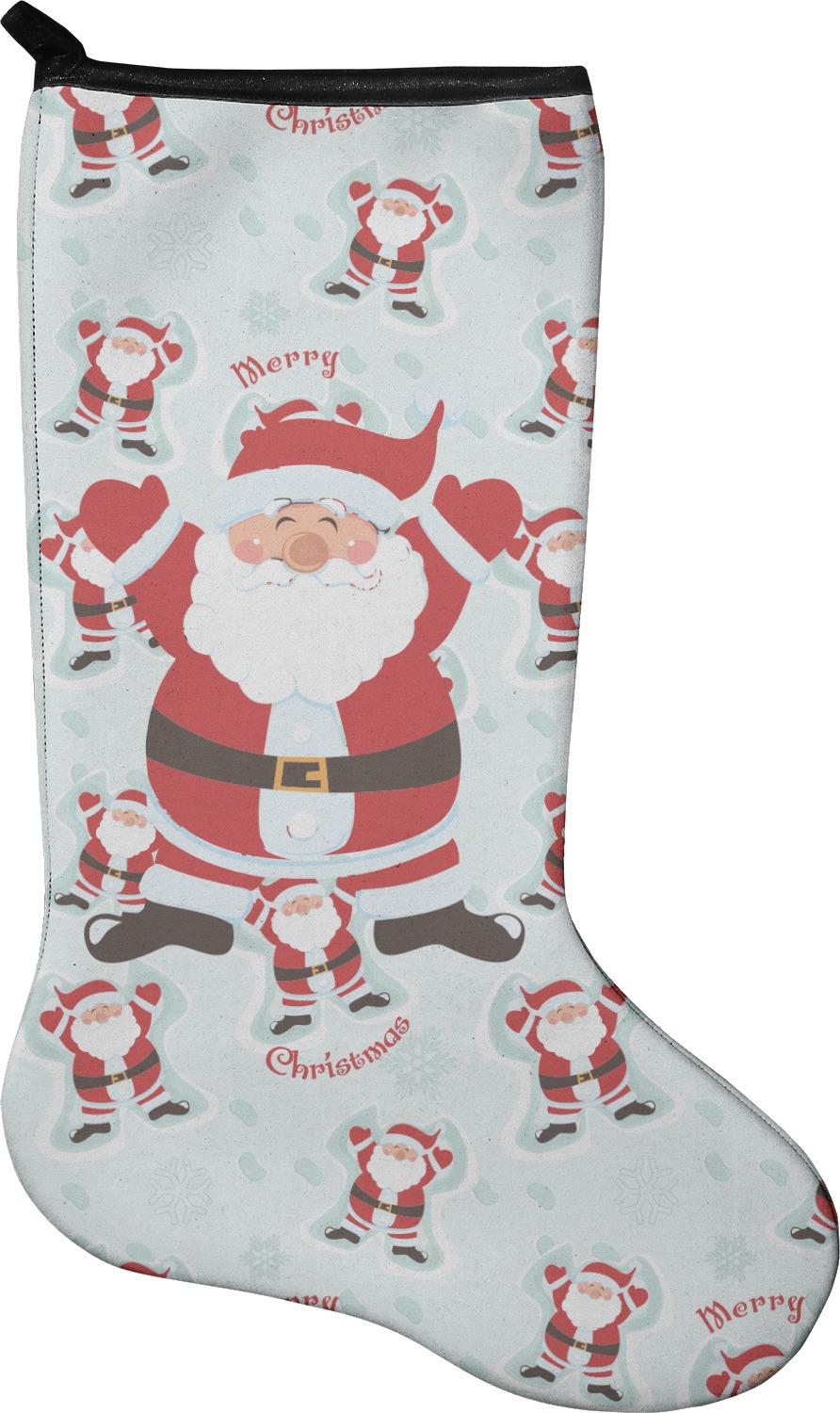 These 17" x 11" stockings are made of neoprene and have a black trim to give them a fantastic finished look. Your very own design is printed right onto the stocking, either single sided with white on the back or double sided where can use the same or different designs / patterns on the front and the back - the choice is yours. At the top of the stocking is a 2" loop for hanging.