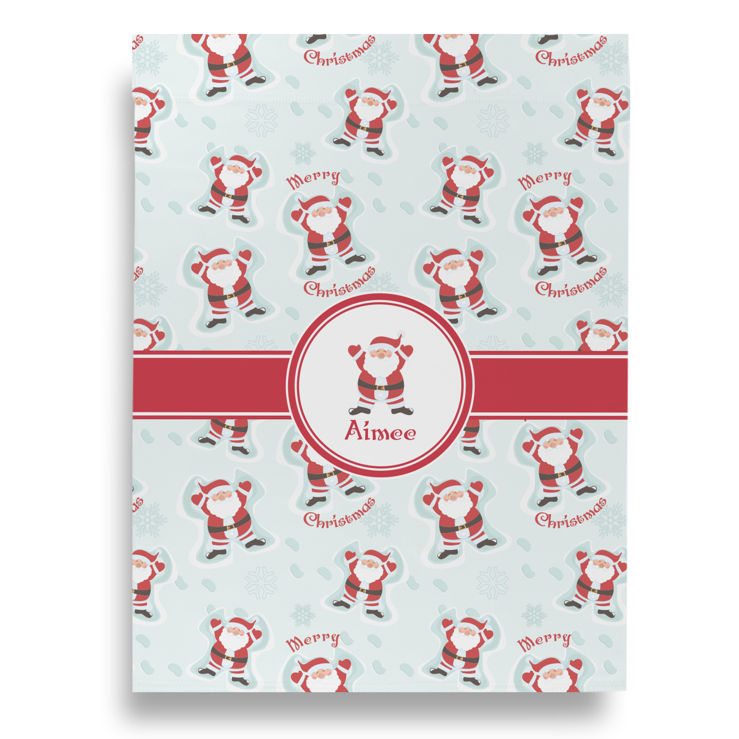 Believe in Santa Claus? Whether you do or not, this design is absolutely adorable with the background that has a cheerful Santa Claus all decked in his red and white, laying in the snow making snow angels. The ribbon and label are red, and the label also has the Santa Graphic along with your name or text for personalization.