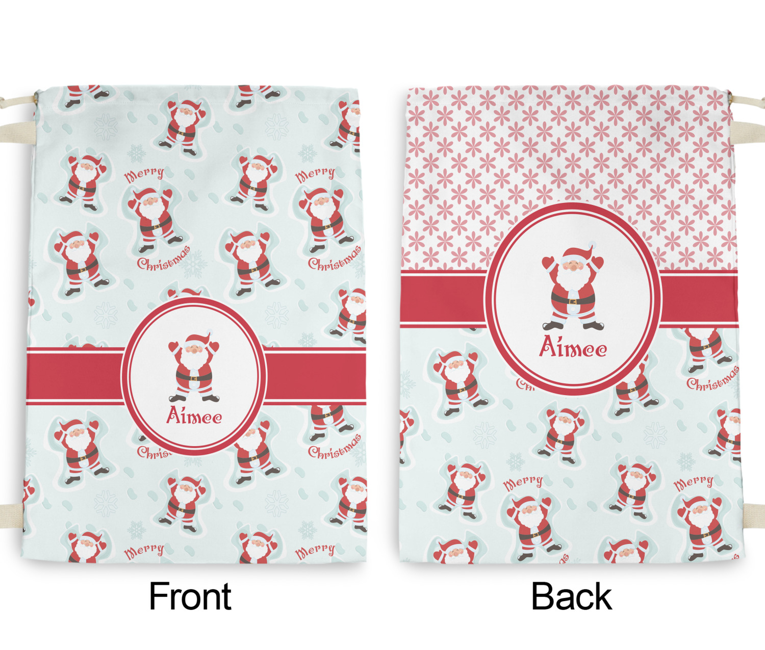Believe in Santa Claus? Whether you do or not, this design is absolutely adorable with the background that has a cheerful Santa Claus all decked in his red and white, laying in the snow making snow angels. The ribbon and label are red, and the label also has the Santa Graphic along with your name or text for personalization.