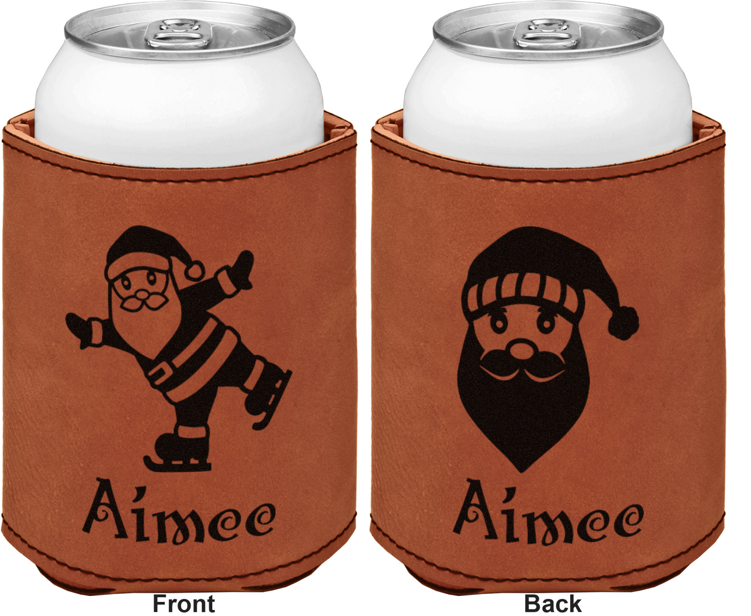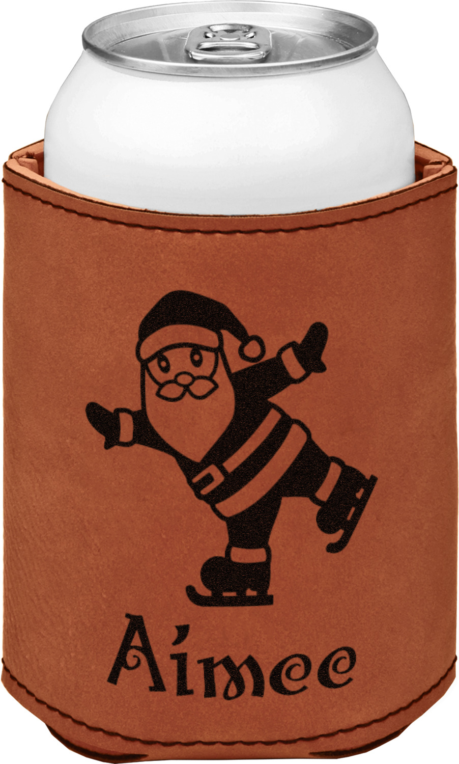 This can sleeve is made from a cognac-brown leatherette and stitched with a sturdy, black thread. A slim padding lines the inside of your can sleeve to allow for a better fit once your drink is inserted. The sleeve itself measures at 4 by 4.5 inches, allowing this custom can sleeve to accommodate most canned drinks. Your personalized design can be engraved on the front and back, or solely the front. When laser-engraved, your design appears as a black coloration which contrasts the leatherette nicely.