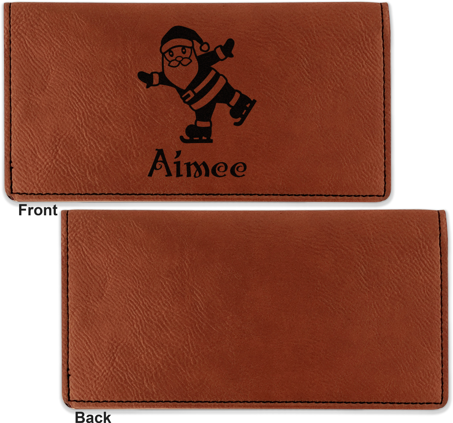 Go into our design center to start personalizing. Your checkbook cover will be laser engraved, making the graphic or text a black color. Choose a fun saying, monogram, or font to go on your checkbook cover. You have the opportunity to do it double or single sided.