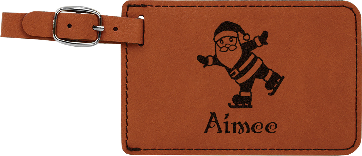 This luggage tag will surely be able to get you started in having all the right tools for traveling. It is made of a beautiful leatherette material that is a nice shade of cognac brown. The front of the tag is where your design goes. The sturdy black stitching gives your design an extra pop and gives the tag extra durability. The back of the tag has a clear vinyl window where you can slip in your address card. The tag comes with a great little buckle strap that you can easily use to clip to your suitcase. The tag itself measures at approximately 5.5"W x 4.25"H.