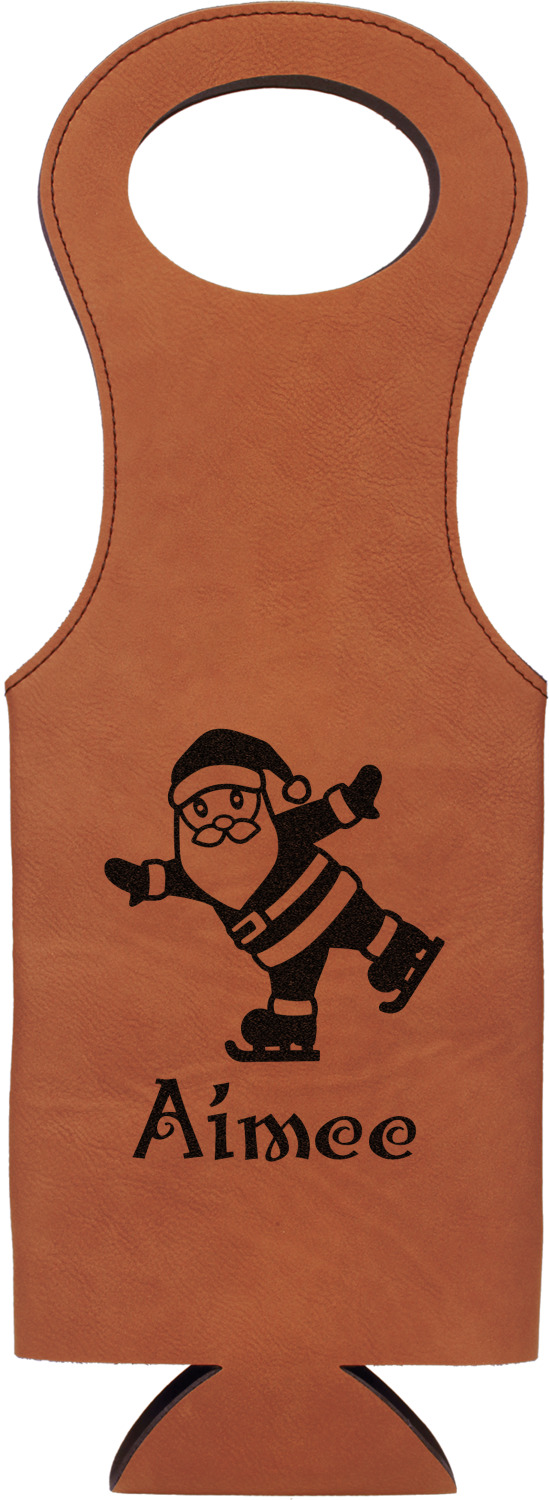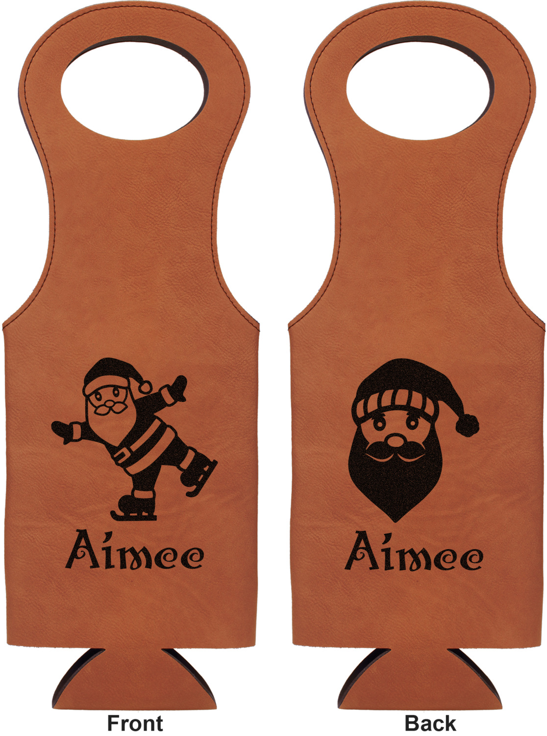 This wine carrier is made from a stunning leatherette, in a cognac-brown color. Strong, black stitching lines the sides of your wine bottle bag and provides extra durability. The interior is lined with a padded, black material to allow for a snug fit once your bottle is placed inside. At the top of this wine gift bag, you'll find two oval shaped handles that elegantly complements the rest of the bag's style. We provide you with the option of laser-engraving the front, or the front and back of your new personalized wine bag!