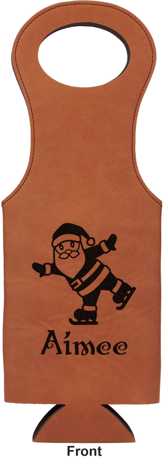 This wine carrier is made from a stunning leatherette, in a cognac-brown color. Strong, black stitching lines the sides of your wine bottle bag and provides extra durability. The interior is lined with a padded, black material to allow for a snug fit once your bottle is placed inside. At the top of this wine gift bag, you'll find two oval shaped handles that elegantly complements the rest of the bag's style. We provide you with the option of laser-engraving the front, or the front and back of your new personalized wine bag!