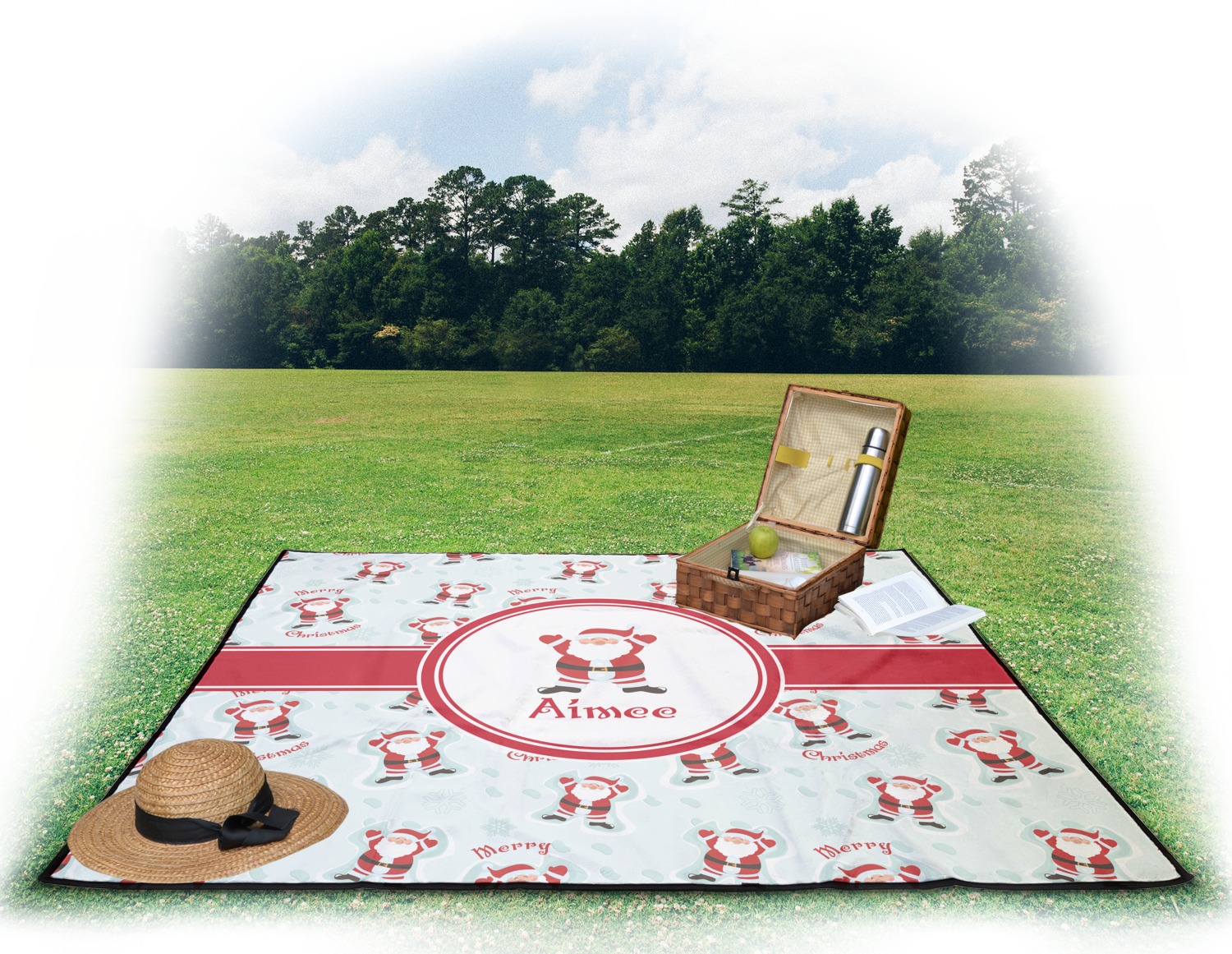 This picnic blanket is perfect for hanging out with your friends at the park or anywhere outside. The top of the blanket is made of a super soft microfiber fleece. The bottom of the blanket is made of a black material similar to a rain jacket and is water repellent as well. This will keep any wet spots on the ground from soaking through your picnic blanket. No one likes a wet blanket. The blanket measures at approximately 50" x 59" and has a nicely finished ribbon edge.