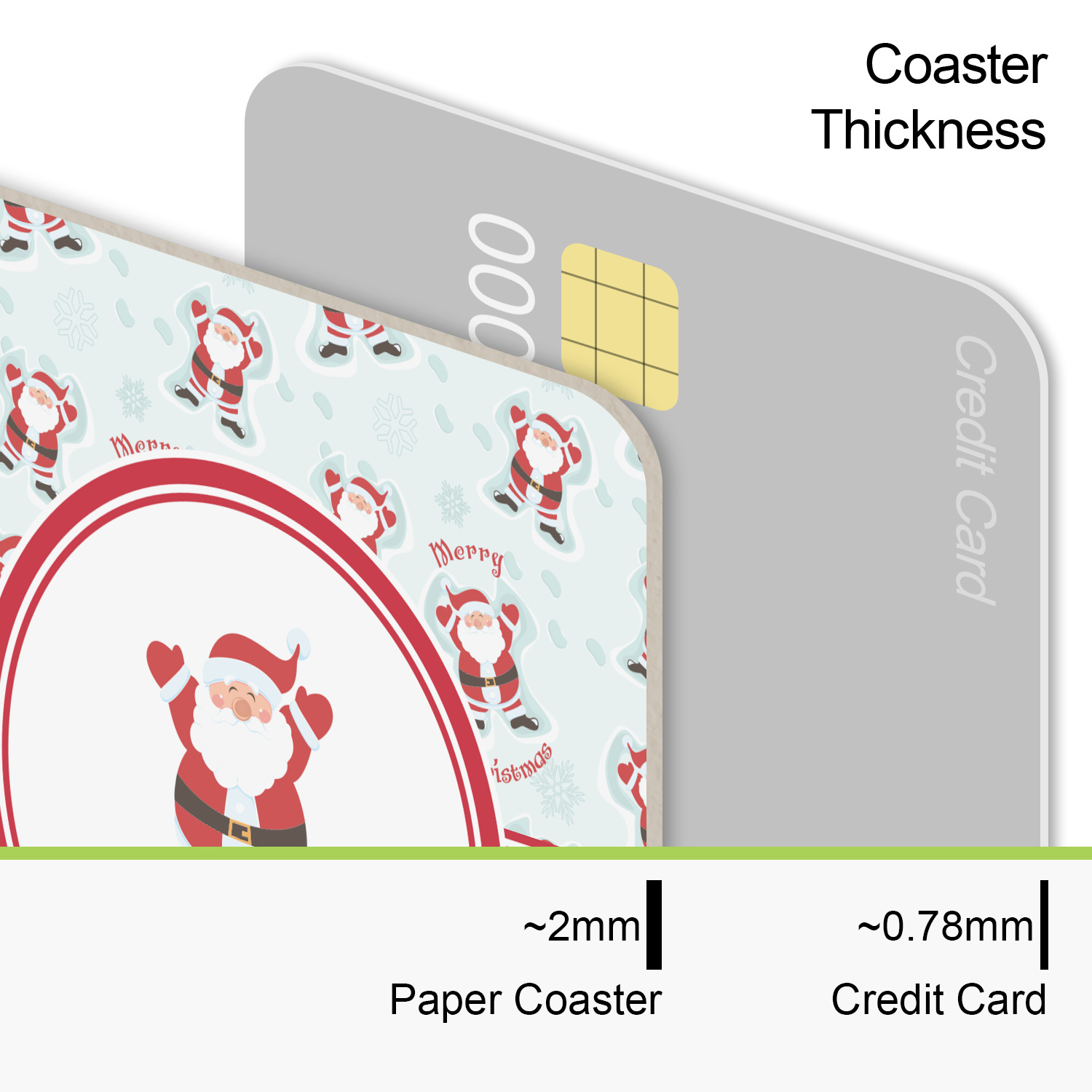 These coasters are perfectly sized for just about any drink being a 4"in square. The paper construction is a thick heavyweight 80 point pulpboard perfect for absorbing the condensation on the outside of your glass.