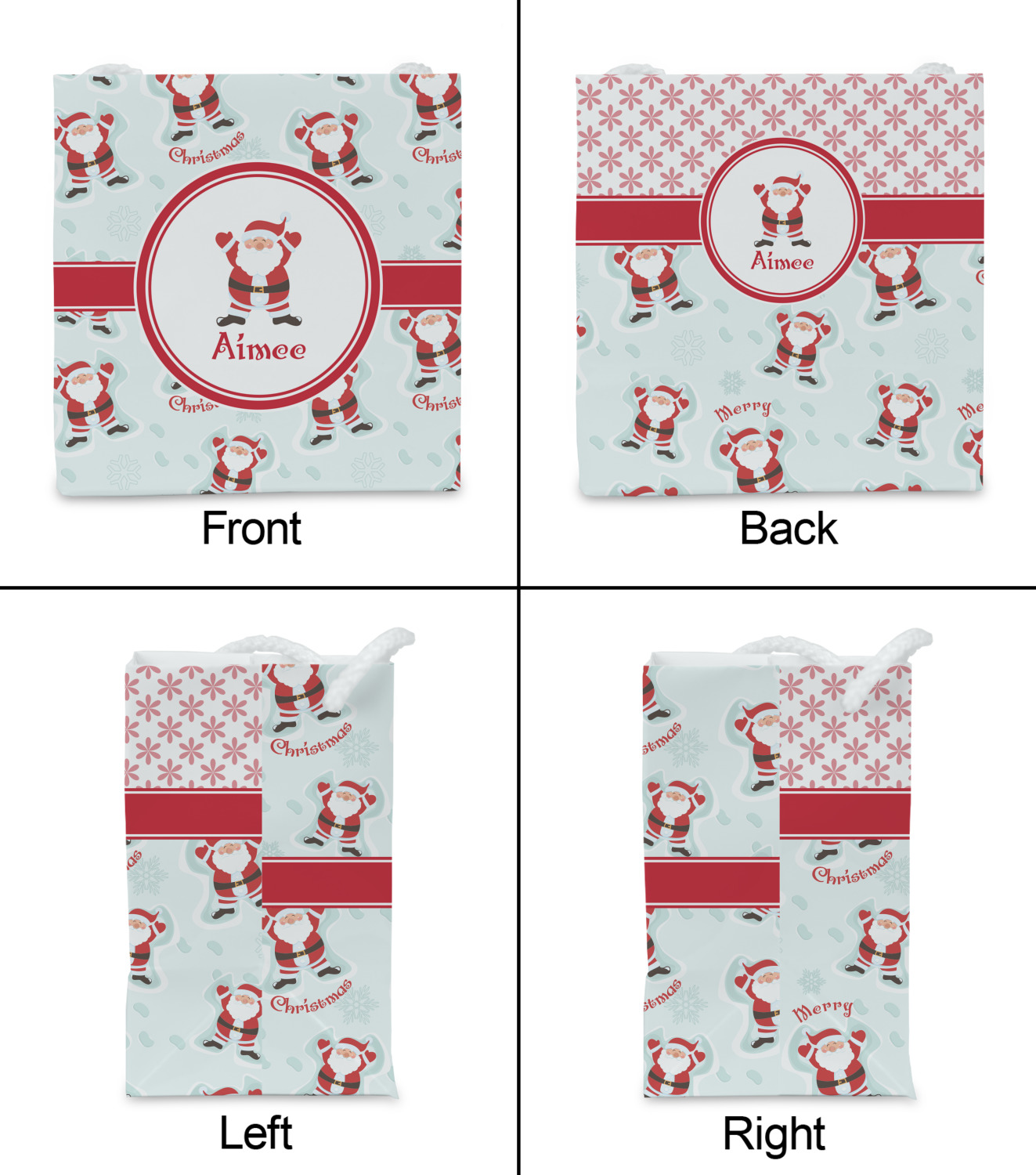 Believe in Santa Claus? Whether you do or not, this design is absolutely adorable with the background that has a cheerful Santa Claus all decked in his red and white, laying in the snow making snow angels. The ribbon and label are red, and the label also has the Santa Graphic along with your name or text for personalization.