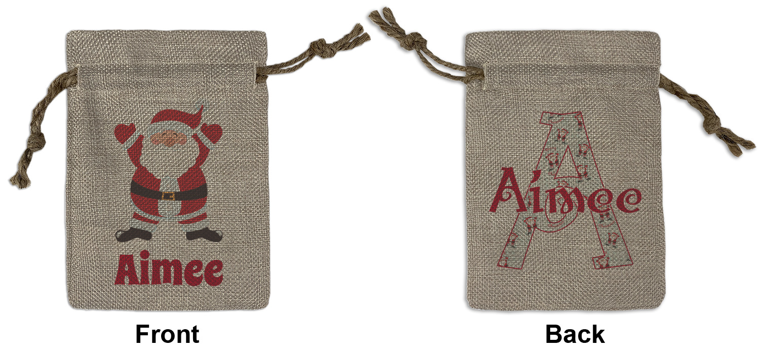 We sell our Burlap Gift Bags in 3 variant sized bags. Made with burlap polyester, each personalized bag can be secured with a twine drawstring pull. Your custom design is available to print on one side or both sides - completely up to you! The sizes of the bags measure approximately 4.5" x 6.5" for the smallest size, 6.5" x 8.0" for the medium size, and 6.5" x 13.5" for the large-sized bag.