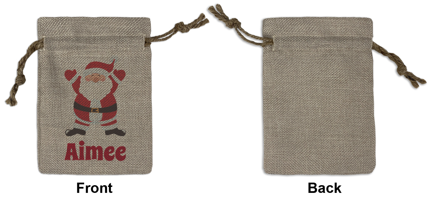 We sell our Burlap Gift Bags in 3 variant sized bags. Made with burlap polyester, each personalized bag can be secured with a twine drawstring pull. Your custom design is available to print on one side or both sides - completely up to you! The sizes of the bags measure approximately 4.5" x 6.5" for the smallest size, 6.5" x 8.0" for the medium size, and 6.5" x 13.5" for the large-sized bag.