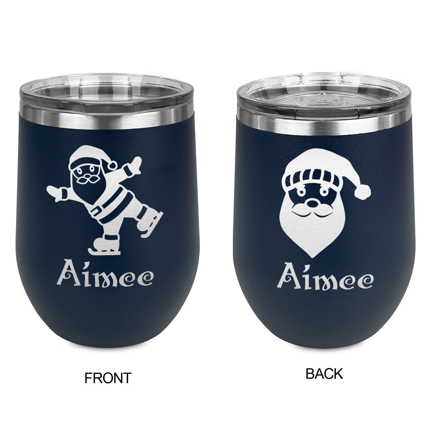 Santa Designs for Stemless Stainless Steel Wine Tumblers - Navy - Double-Sided