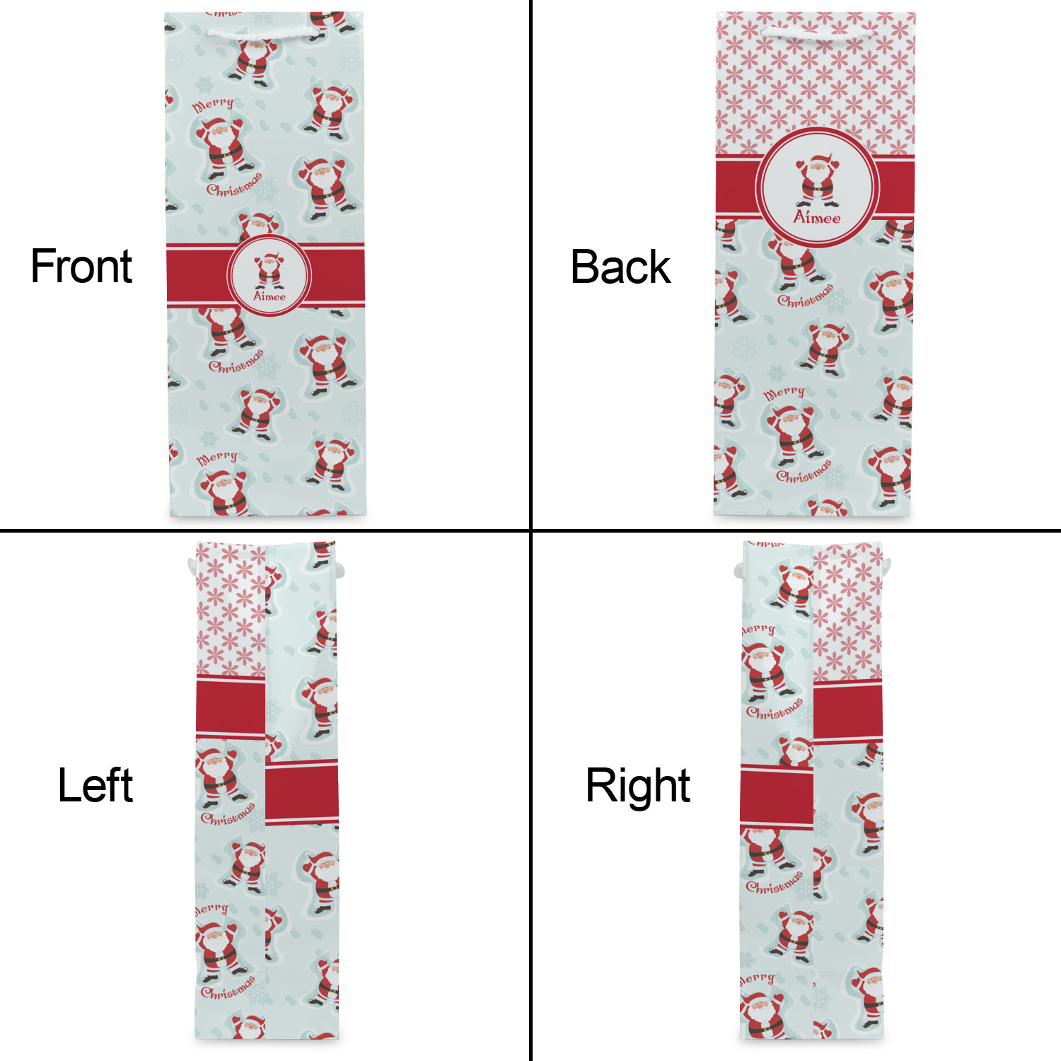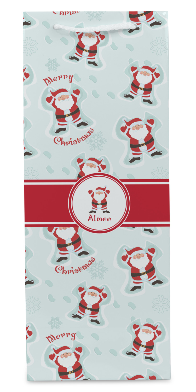 Believe in Santa Claus? Whether you do or not, this design is absolutely adorable with the background that has a cheerful Santa Claus all decked in his red and white, laying in the snow making snow angels. The ribbon and label are red, and the label also has the Santa Graphic along with your name or text for personalization.