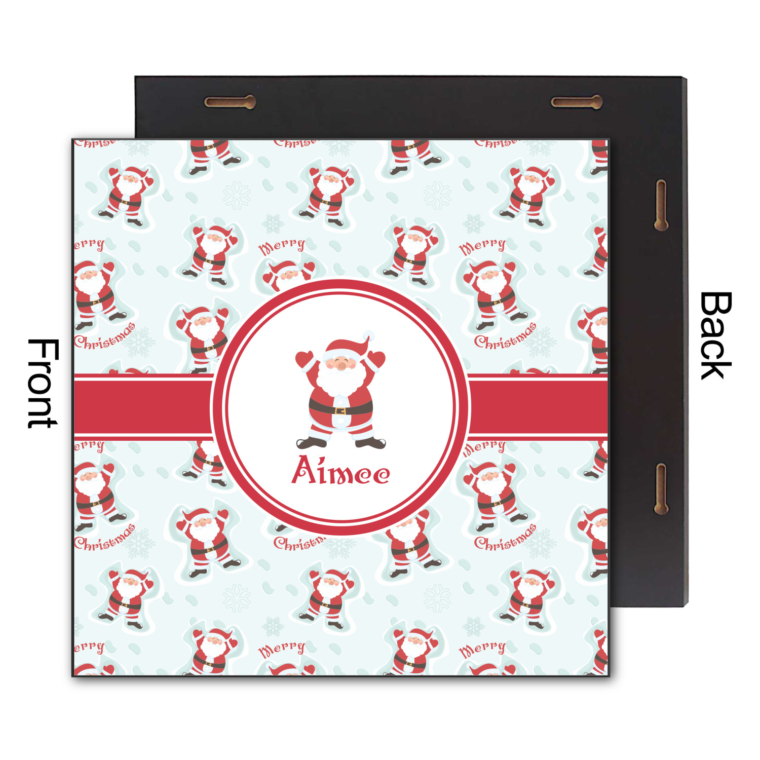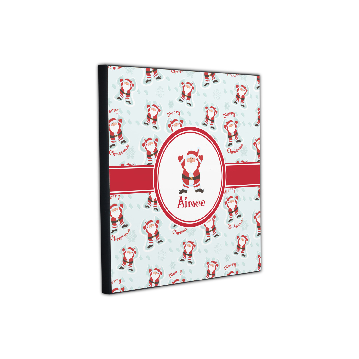 Believe in Santa Claus? Whether you do or not, this design is absolutely adorable with the background that has a cheerful Santa Claus all decked in his red and white, laying in the snow making snow angels. The ribbon and label are red, and the label also has the Santa Graphic along with your name or text for personalization.