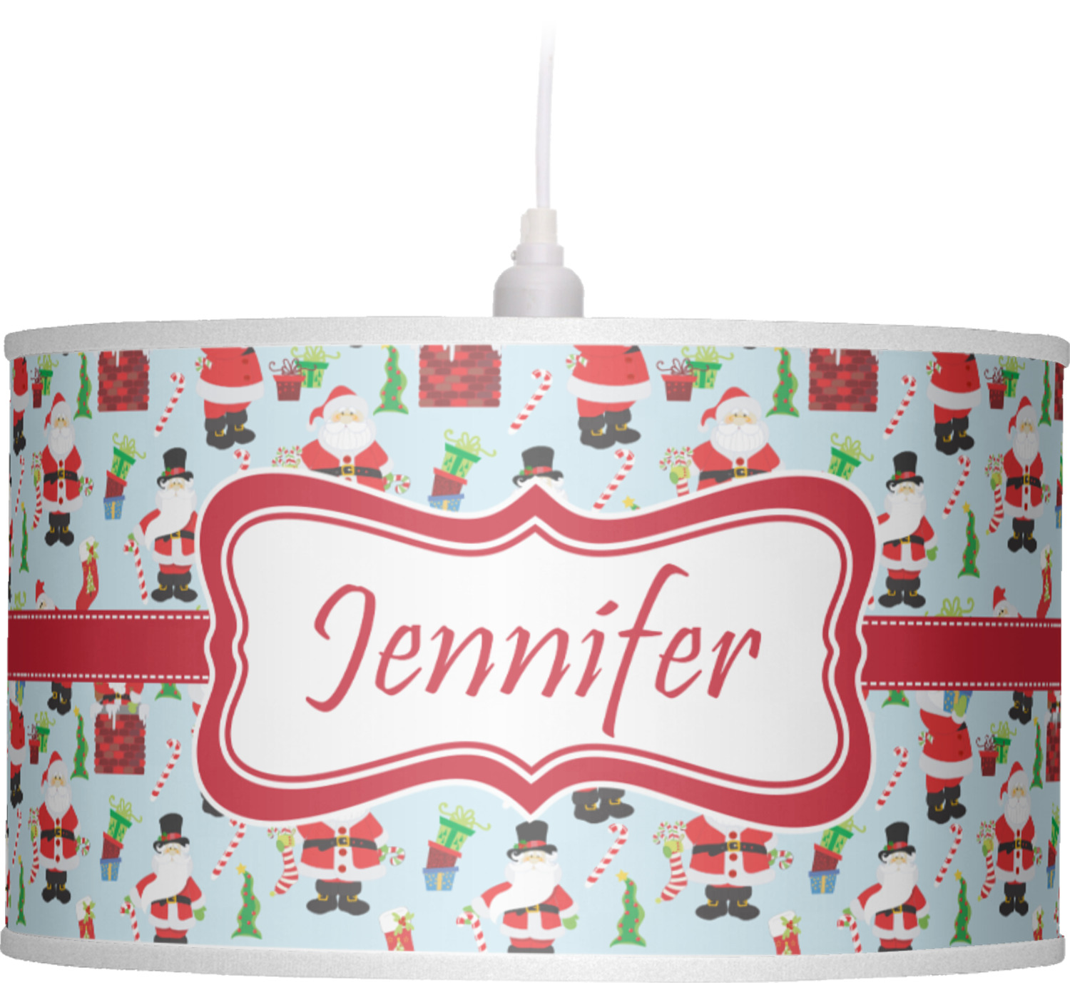 These pendant lampshades are in a cylindrical, drum shape. Available in 2 sizes - 16 inch diameter and a height of 10 inches or 12 inch diameter with a height of 8 inches, this lantern pendant light will not go unnoticed in your home. The interior of this light shade is made of flexible, smooth plastic, and the base color of the lamp is white. Your personalization is displayed on the exterior of this custom lampshade. The fabric shades the fabric fully wraps the ring for a sleek look. Your purchase includes a 12 foot long cord that has a convenient on and off switch attached, the cord is black in color with a tasteful cloth covering over the cord to add the sophisticated look to this light fixture. This lamp can fit a 60 or 75 watt light bulb, but the bulb is not included. Please scroll through the images above to learn more about the structure and shaping of this lamp compared to the other ones we offer.